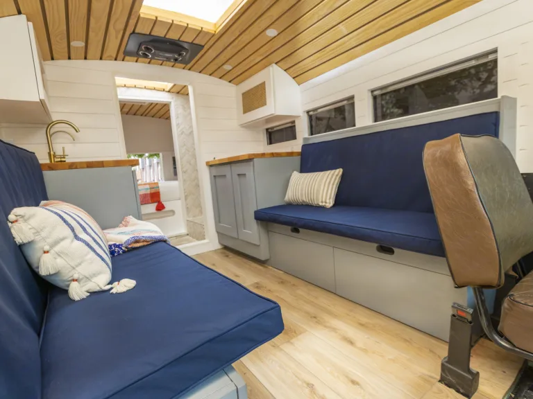Welcome to Little Kahuna. Probably one of the best schoolie conversions on the East Coast. This 24 ft Schoolie was professionally built without compromise on the quality of materials used with the emphasis on being green.This is a 1996 Blue Bird Engine School Bus with a 8.3L Cummins Diesel and an Allison transmission – i.e. the dream bus engine finds, especially for mountainous areas.Story: This bus was in incredible condition when we bought it, it came from a Virginia school district with only 40k miles, such a rare find and was professionally built out from those humble beginnings.This stunning build was designed by master craftsman Genius John. John took the most desired and sort after, school bus with the most amount of headroom to ensure you had the most available space and named it Little Kahuna. John chose to call it Little Kahuna on account of the colors that he had envisioned for it that reminded him of surfing on some excellent waves and taking LK (for short) on some excellent adventures. John also took all the lessons he's learned along the way to make this the ultimate vehicle. No delivery feature.Looking for a 1-night or a 2-night Trip? See our rates!