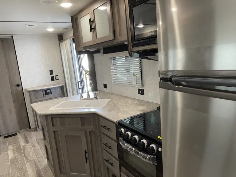 *The entire camper exemplifies the perfect amount of space needed for the whole family to enjoy, with both slides extended you can feel at home with the amount of foot space throughout the unit.