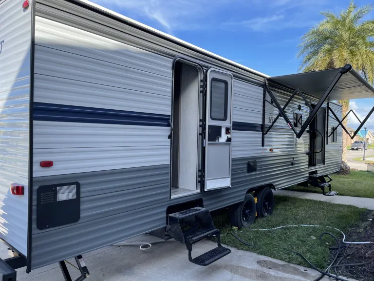 3. If you are at a campsite with full hook ups, we require the waste lines to be hooked up and the grey water tank left open to avoid any flooding in the camper.