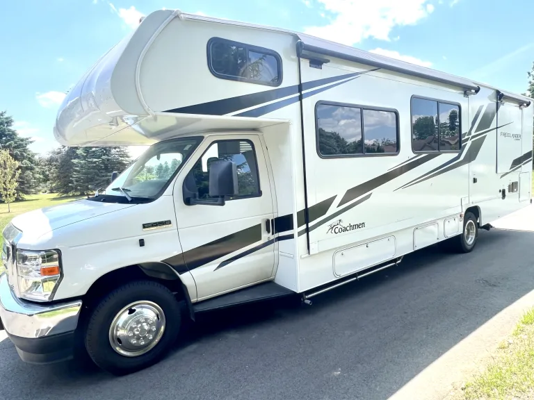 Welcome to your new home away from home! Our Coachmen Freelander 31MB, a class C gas motor home, is equipped with a three-burner range, power lighted range hood, residential size microwave, 10 cu. ft., 12V Double Door Refrigerator, kitchen backsplash, and double-bowl sink, as well as a huge U-shaped dinette or 63" sofa with plenty of room to seat the whole family. There is even an outdoor camp kitchen if you enjoy cooking outside.The rear private queen bedroom has its own wardrobe slide and tons of storage space. You will also find the private toilet and sink to be convenient with the shower right across the hall so two people can freshen up at once. You will appreciate the CRV Comfort Ride Premier that includes Bilstein front shocks, a dynamic balanced driveshaft system, electronic stability control, and more! Driving is a breeze with the turn signal cameras as well as a CarPlay Touch Screen Dash Radio with Backup Monitor.Your camping trip will be smooth sailing and full of comfort in our Freelander - Don't forget your camping grill and grilling utensils!30AMP hookup w/ 50AMP converter available.