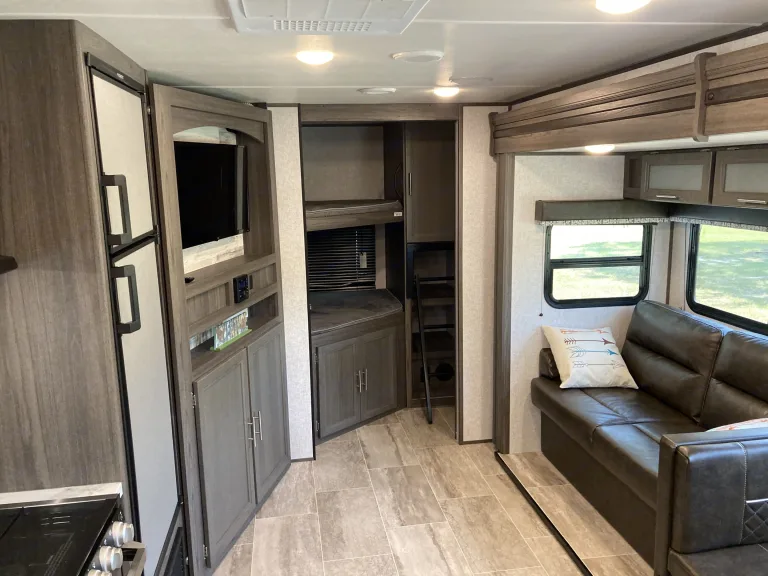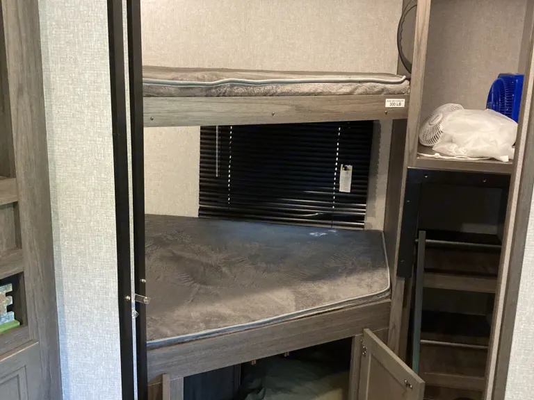 Very spacious bunk house camper. The main queen sized bed is separated from the living area with the bathroom. This is a two door sound barrier for our louder sleepers. The double sized bed bunks are located at the other end of the camper. This is convenient for our younger campers to get some sleep. We can deliver this camper up to 80 miles from Moncks Corner SC. Small dogs are allowed. No cats please.
