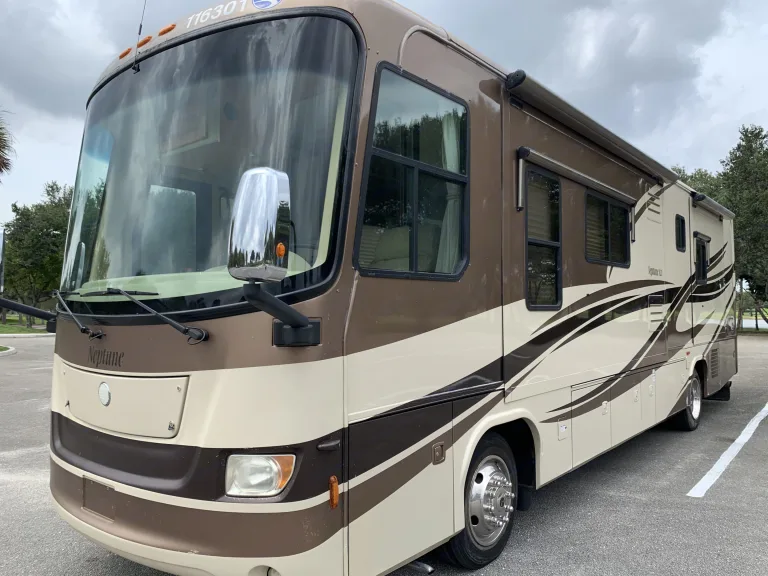 2007 Monaco Holiday Rambler Neptune Cayman XL 36PDQ Turbo Diesel With 4 Slides Out. This coach is literaly brand new in incredible condition. Only 3816 Miles. It has been used Only 30 Days in a movie. Since then it was stored. It feels, smell and looks new. This unit is special order and it is fully loaded. Advanced Inverter, rain sensor auto awning, 2 Flat Screen LED TV's 32" Radio, cd player, Fan in the bedroom. Central Vacuum cleaner, Icemaker. Tires are perfect, new batteries, new everything, Equipped with Cummins 325 HP diesel, air ride suspension, air brakes, air horns and engine exhaust brake, Spartan chassis, Onan diesel generator barely used, back up camera, Automatic hydraulic leveling jacks, central air and heat gas and electric, 3 WAY Water Heater electric, propane and engine heated. Has leather seats, Sleep Number with remotes mattress, bed barely used, pull out bed, 2 DVD players with apps, solar powered battery charger, powered awnings plus porch awning, satellite tv. Plus much more,