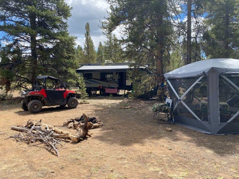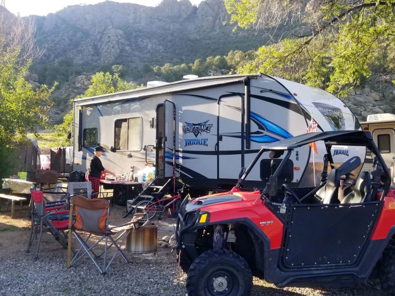 It also has 17 Feet of space that fits most Polaris Razors and / or a few 4-wheelers.What's includedBedding for main bed, cookware, utensils, pots, pans, cups, coffee maker w/ filters, coffee cups, towels, a roll of t-paper, dish soap / drying mat / hand towels, games, 2 camping chairs, bowls, clothes line, cleaning items for accidents, flashlight, lighter, 2 propane tanks, wheel chalks, leveling planks, and more.RecommendationsThe Midwest is a great place to explore!! Colorado, Florida, North Carolina to the Smokey Mountains, Redwood Forest, to the Gulf Stream Waters :) - Canoeing, Fingers Lake, Boondocking, so many places to see and explore...you are only limited by your imagination!Other things to noteAll Pets welcome! $10 per night per pet. (strictly enforced)