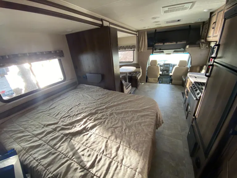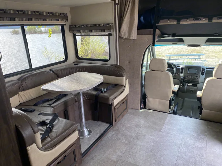 Six seatbelts. Sleeps six. 14 MPG. Mercedes Sprinter cab and engine. Auto-leveling so it's leveled by a push of a button. This motorhome is just the right amount of luxury. Super slide to make this a very roomy motorhome. And it still fits in one parking spot! Under 12' tall and under 8' wide. This motorhome is built perfectly. It rides and drives like a dream with big windows to take in all the views this beautiful world has to offer.This unit is ready to go! Show up to the airport, we'll meet you there, and then head off to explore this wonderful planet.Also, we offer one-way rentals. Start or end here and we can get the motorhome to you or back to us for a fee (schedule permitting).RV delivery and set-up is not a problem for a fee either. Just let us know when and where you want it. We can even drive you to the destination and pick you up for a fee (schedule permitting).What's included• Also, this unit is fully stocked! We give you what you'll need to enjoy your time in this beautiful and easy-to-drive motorhome including (any or all of the following based on your needs):