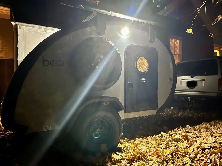 The EscapePod is a 2021 teardrop trailer made by Bean Trailers that is adventure ready! Boasting a queen-sized mattress that folds into a couch, 54.5" inches of cabin clearance, and (tested) enough space for a 6'4" adult, this mobile base camp is ready to go almost anywhere you are with its 15.5" of ground clearance. Despite its single, watertight, fiberglass shell, no aquatic excursions, please.
