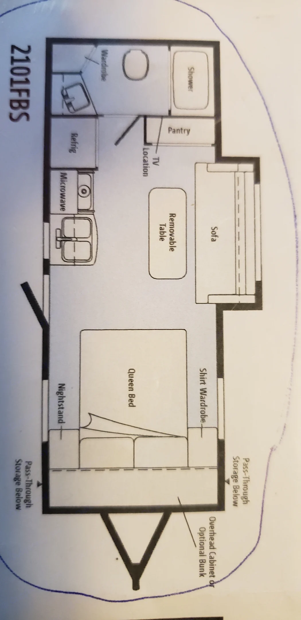 This Winnebago Minnie 21 ft. travel trailer will comfortably accommodate 3 people. It is impeccably clean and comfortable. A very comfortable queen size walk around bed (*sheets included) Wardrobe closet, overhead cabinets, under bed storage and nightstand in front. A single slide out gives room inside for table dining, or lounging on the couch, or flip down for a single bed.