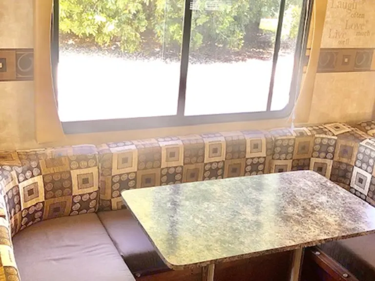 Perfect for adults and kids. Sleeps 6 adults comfortably. One master suite bedroom with queen-sized bed, a sleeper sofa, perfect for 2 small kids, two twin beds, dinette set turns into a full size bed. TV for family movies. Large eating dining set for game playing and family dinners. This is a perfect way to make new memories with family and friends.