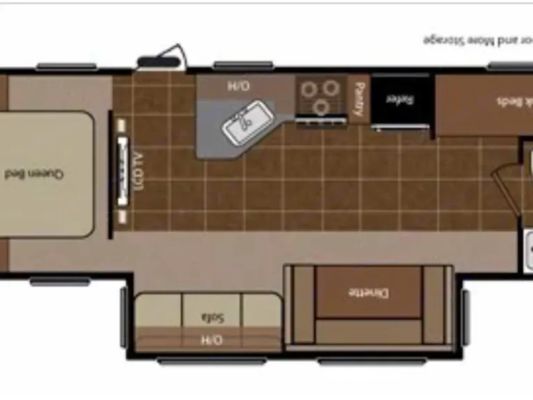 A very cute home away from home trailer. Has one large slide out which makes the trailer much larger. Approximately 250 square feet a living space.