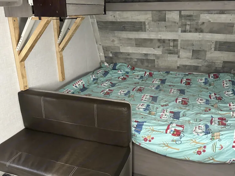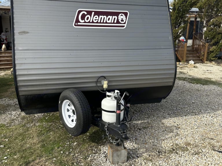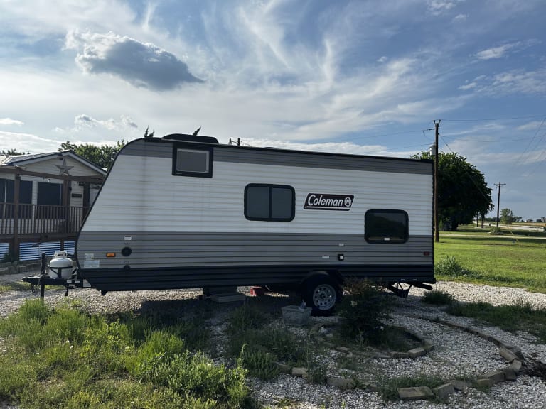 It has an awning, indoor shower and toilet, microwave, refrigerator, a/c, and a cozy led fireplace that can be used for heating or just for the lighting. What's includedSome camping chairs, sewer hose , electric cable (30 Amp) , drinking water hose, paper plates, paper towels, silverware, and cups. Linens are on the bunks and queen but you will need to bring your pillows.RecommendationsLots of places to go in this light camper, Oklahoma has alot of great camping sites, Arkansas is a beautiful place to go , along with just about anywhere you’re sure to have a great time!Other things to noteOnly 2986lbs with a hitch weight of 385lbs and is 21.42 long.