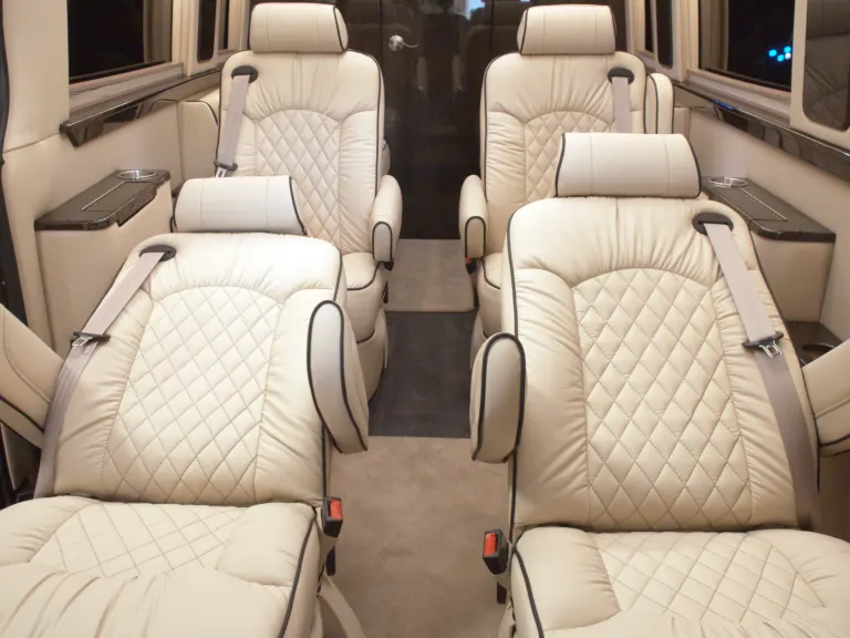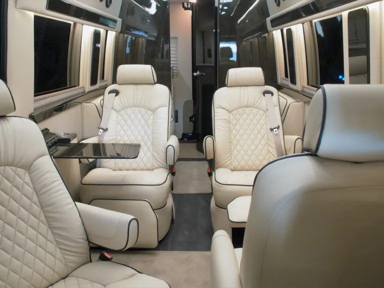 Designed for family and executive business use, there are six beautifully plush captain’s chairs, bench seating that can lay flat into a bed, toilet, sink, refrigerator and microwave. All passengers travel in comfort and style whether it’s a business meeting, weekend excursion with family, a week-long vacation with grandparents and kids, or golfing with friends.The spacious interior of the Presidential is truly amazing. The classy Maybach ceiling allows plenty of headroom for passengers to freely stand up and walk around. Middle captain’s chairs swivel so guests can either face forward, or turn around and have a conversation with passengers in the back. It’s perfect for all occasions– in a family configuration, business meeting configuration or transformed into a limo for a night on the town. The third-row of captain’s chairs have power footrests and fold-away solid wood lap tables–great for relaxing, reading, working on a laptop, playing games or watching TV on either of the two included flat-screens. And, let’s not forget the two comfortable couches in the back that make a bed for a quick nap or an overnight excursion. There’s even a large dorm-size refrigerator and microwave conveniently tucked away but within reach for drinks and snacks while on the road. The toilet and sink keep you traveling in comfort, privacy and safety with minimum downtime.What's includedEasy to understand operation manual, Apple TV, DVD, 2 TV's, multi-user entertainment center, 5 Headphones, Cargo Hold net (so you can separate cargo from toilet/sink/refrigerator/microwave), 50' electric cord/adapter, dump hose, water hose. Wi-Fi Internet (when available but not guaranteed due to data limitations by carrier).Other things to noteHi there! My rules are pretty simple and are intended to provide a level of mutual respect for current and future renters.- NO Smoking of any kind! ... yes, including e-cigarettes!