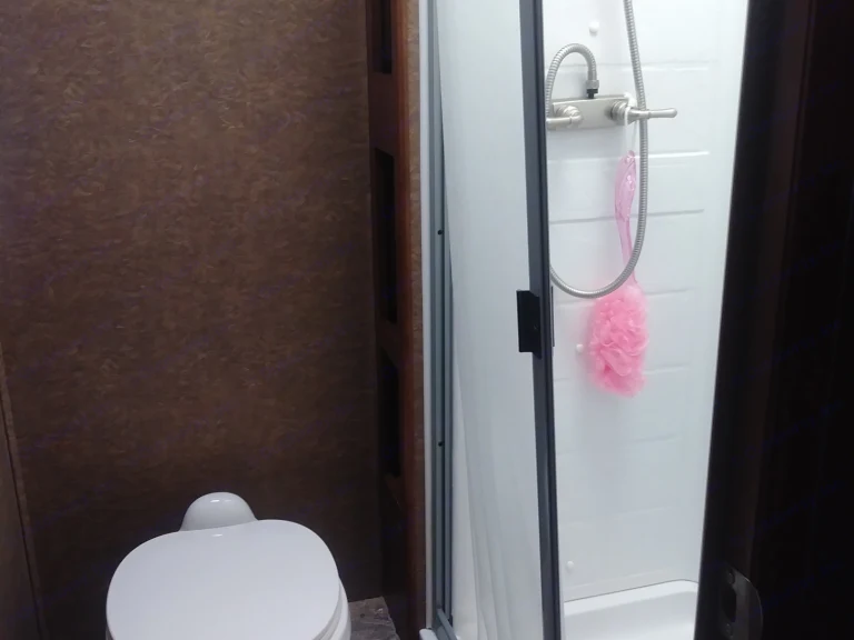 Everything runs with the push of a perate bedroom with queen size bed with a slide to access all the spacious cuboards and very large so built in tv. Extra sleeping there is a double overhead bunk above the drivers seat that comes down with a touch of a button and also the dînette and couch. There is a large slide that opens up the kitchen and dinette area. Easy to park because of its back up camera as well as two side cameras. Another tv in the living area. Toilet and shower are seperate from the sink. Everything you need to have a great trip.