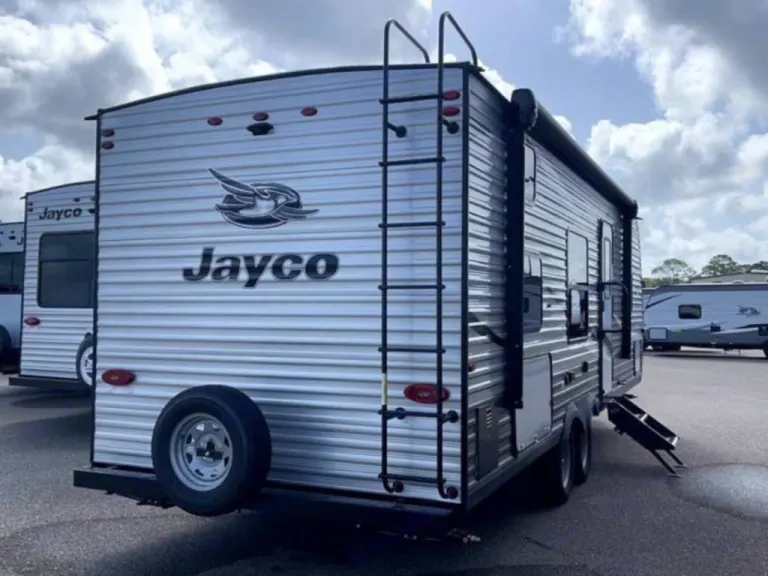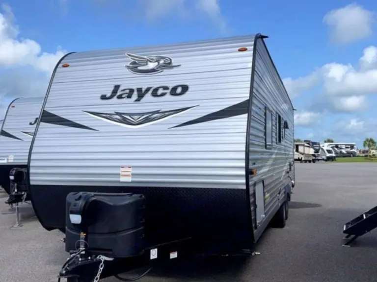 Pass-Through StorageEach Jay Flight SLX 8 travel trailer by Jayco includes the Magnum Truss Roof system which provides seamless DiFlex II material on the roof and plywood decking, and a fully integrated A-frame and I-class cambered structural steel I-beams which is built to last! The roof-mounted air conditioner will come in handy during the hotter months, and the two propane bottles will help keep your showers hot and your meals warm! And when you need to rinse off yourself, your bikes, or the gear, the outdoor shower will do the trick. Choose the floorplan that fits your adventurous side, and load up the family for fun!