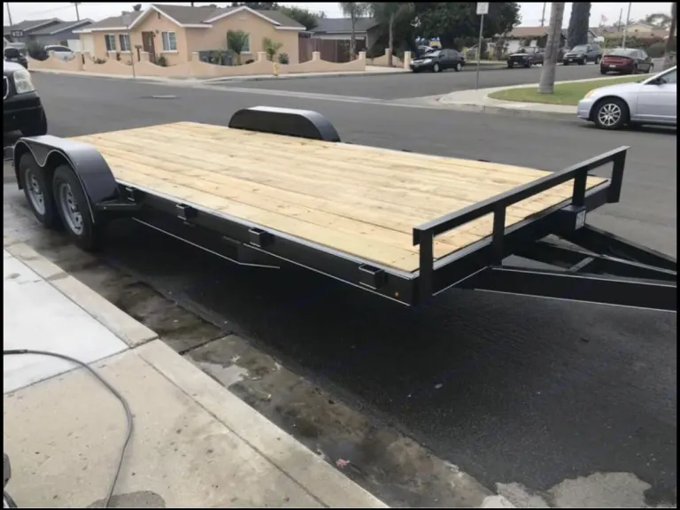 Dove tail trailer with a 7,000 capacity, it has electric brakes on an axle, 2 ramps as pictured.