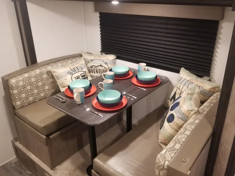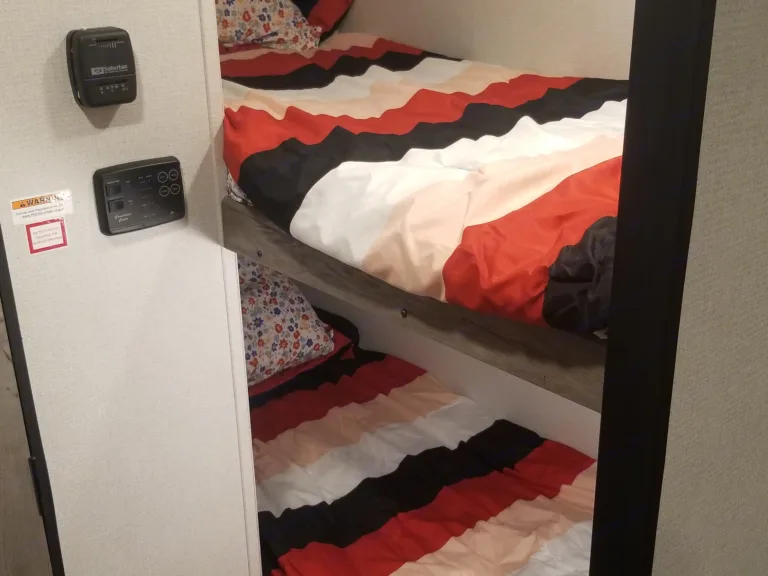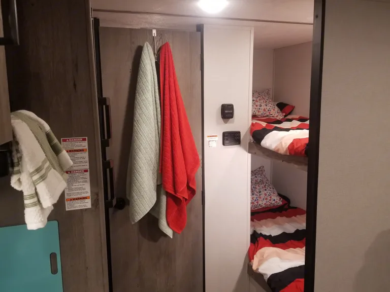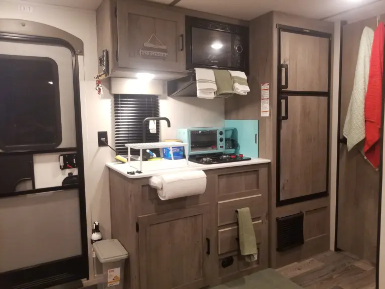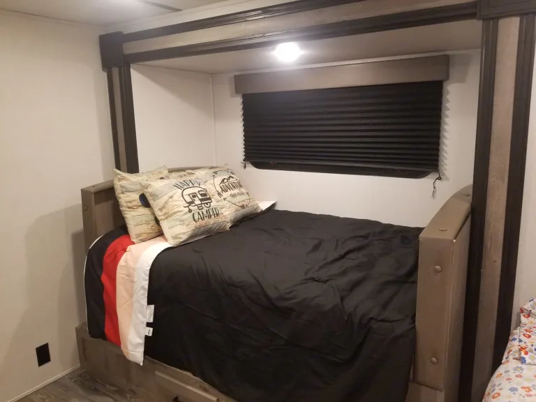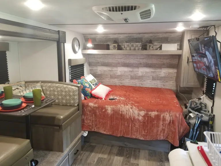 Want to get away for a trip and have some fun? Come stay in our hotel on wheels. Just because you are off the grid and camping doesn't mean you have to rough it. This mini retreat is packed with huge comforts and added supplies. It will sleep 5 comfortably with its one short queen, two twin bunks, and the dinette turns into a full bed as well. All linens, pilllows, comforters, kitchen cook and dining wear, cleaning supplies, RV toilet paper, and towels will be provided. Use your mobile hot spot and connect to the 43 inch Fire TV so you can watch Netflix, Disney Plus, HBO Live, and Amazon on us! If your in the middle of nowhere cell service can be spotty, but not to fear, stop by a redbox and pop a movie into the DVD player or enjoy the selections provided by us. The beautiful thing about this RV is that it can be towed with most Suvs and trucks because of its weight and size. A weight distribution sway hitch will be provided for extra security. Not to mention, we have installed a back-up camera on the camper with a wireless monitor you can plug into your auxilary power outlet for added easeWhat's includedFresh linens, towels, cookware, table top grill, silverware, outdoor table, camping chairs, set up supplies; Amazon, Disney+, and Netflix video streaming services already on smart tv.Other things to noteNo smoking in the unit. Do not grill under the awning, upon return flush the water tanks and sewage. Only use the provided RV toilet paper.