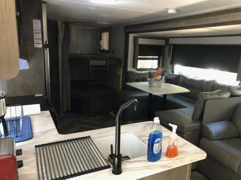 31ft camper with bunk beds great for kids and privacy for adults in the master bedroom. Outside grill and fridge. Outside speaker system with smart tv inside. Lots of cool things about this camper. What's includedBring your own linen and towels. Toilet paper, dishes, silverware, crockpot and coffee pot provided. RecommendationsPets welcome!Other things to noteNo smoking inside. Bring your own chairs for sitting outside. Thank you.