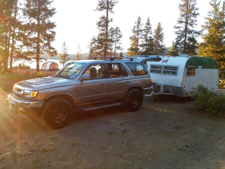 Valerie is a vintage gypsy-like wagon with custom stained ceilings and claudville esque vibes. She’s super smooth towing behind my 4-Runner and a little dream to sleep in as the memory foam mattress leads to a comfy nights sleep. There’s plenty of storage for all your camping needs and comes equipt with all the necessities as well as access to a generator if need be. Perfect for a couple or small family. The table inside also folds down to a twin sized bed. Not fit for tall types but if so, be sure to watch your head.
