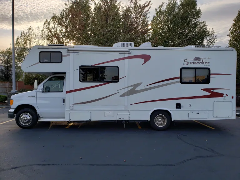 Take this beautiful Class C Forest River Sunseeker out on the open road for the trip of a lifetime. It doesn't get better than exploring North America in an RV while also enjoying all the amenities of being at home. The Sunseeker is easy and fun to drive. She has a hefty Ford 450 Super Duty 6.8L V-10 engine, automatic backup camera, and extra wide towing mirrors for added safety and visibility.Inside is fully loaded with a driver side dinette slide-out, a passenger side fully electric awning with high-wind sensing automatic retraction, heater, A/C, dometic fridge/freezer, microwave, 3-burner stove, oven, double basin kitchen sink, shower, toilet, private master bedroom memory foam queen bed, 26” Smart Hdtv in living area, JVC CD/USB/Aux/Bluetooth audio with full speaker system wired to both cab and bedroom, 5G Wifi hotspot, automatic fan with rain sensor, over-cab bunk, fold-out dining booth converts to a third bed, and lots of storage.Included with rental: