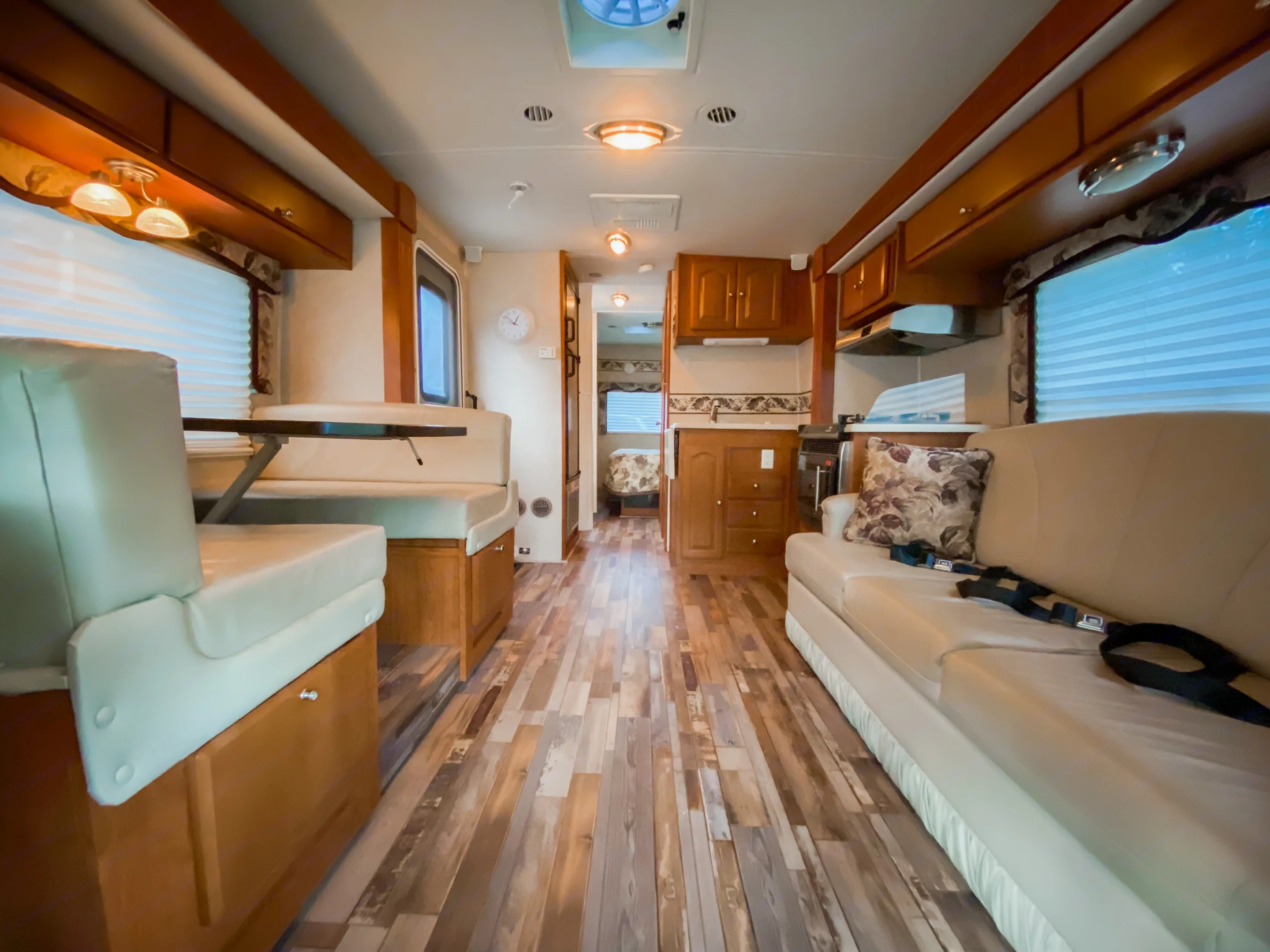 Beautiful low mileage (<13k miles) 2008 Forest River Lexington! Easy to drive. Sleeps 5-6 people. Featuring a new flooring, professional conversion fully equipped with a full-sized bed, sink, stove, microwave, ventilation, AC, and heater. Fully stocked kitchen (pots, pans, utensils, plates, bowls, and cups). Onboard generator. This Class-C motorhome features 3 slideouts for increased size and feel when you're set up. What's included4x camp chairs, Yakima bike rack (optional at extra charge), 2x adult bikes (optional at extra charge). The pick-up time is 3:00 PM. The drop-off time is 11:00 AM.Other things to noteSmall pets welcome (up to 30 pounds). No smoking.
