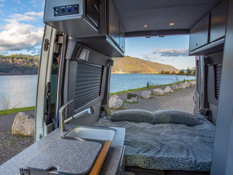 Willamette has been outfitted by the folks at Sportsmobile and offers all of the necessities for comfort while on the road. Based off of the proven Mercedes-Benz Sprinter chassis, the 3-liter V-6 diesel engine offers excellent fuel economy while providing plenty of horsepower. The floor plan is set up with a wet bath/shower and cassette style toilet. Willamette offers a seating area big enough for 4 to sit at the table and enjoy a meal or play a board game. Cooking a meal is a breeze in Willamette. The 2.5-cu. ft. compressor-driven refrigerator keeps food cool, while the single-burner induction cooktop allows flameless cooking inside the vehicle. There is plenty of room to prepare a meal on the butcher block counter top that also includes a sink with both hot and cold water. There is 21 gallons of onboard fresh water for ample off the grid camping and city water hookups to use when you pull into a full service camp spot. When it is time to go to bed, the rear bench and table area easily folds down into a queen size bed. The windows come complete with both privacy screens or black out shades. We include soft cotton sheets and down pillows and comforter with duvet for a great nights rest. Also, this Sprinter is now equipped with a diesel heater for night time use.We take your vacation seriously. We give each vehicle a thorough mechanical inspection before each trip insuring your road trip to be hassle free. We have been in business since 2010 and have had 100's of happy customers and our shop is located close to the Portland airport.