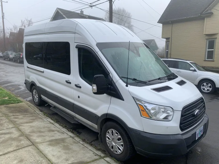 This is a custom conversion, high roof, Ford Transit conversion, completed in 2021. It is built out with a welded metal and bent aluminum, bamboo finishes. The space is incredibly versatile, easy to use, and beautiful and comfortable for long distance travel and camping. There's Tons of storage inside to hold every piece of travel gear that you may want to bring, with room to spare. It's designed to be stealth camper when needed, with total blackout shade protection. It has snow tires and has high clearance, so it can handle relatively rough roads. It's got a stove, sink, fridge, swivel seat, curtains, a fan, dining table, two stools, a queen bed with memory foam mattress, an awesome thermostatically controlled heat system, 110V outlets, USB ports, night lights, art lights, and much more. What's includedIt comes with kitchenware, fresh linens, a blanket, pillows, a fresh tank of propane, 10 gallons of fresh water, and camping chairs. RecommendationsSince there's a 3 week minimum rental period, I'm expecting that the renters will use this van for a long haul trip, likely to the desert Southwest in Utah, or another warm location. Other things to notePets welcome!
