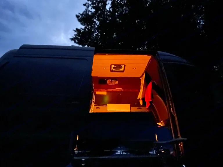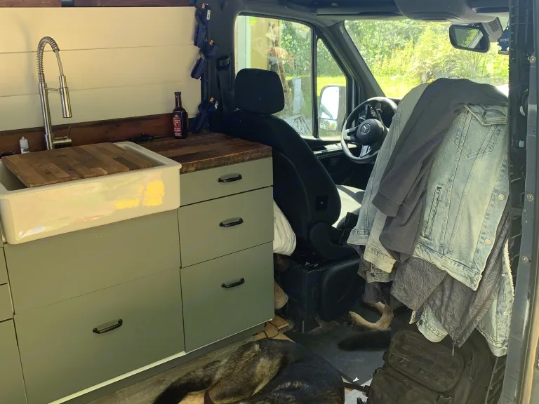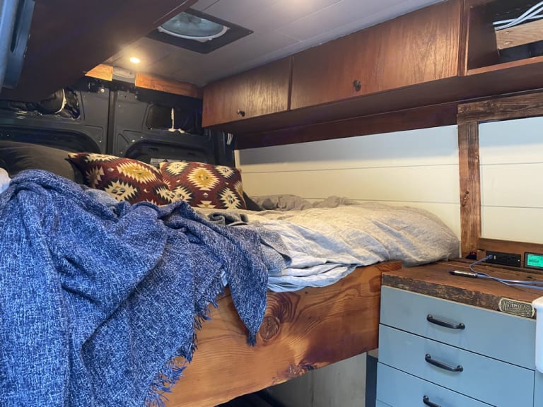 My Names Fletcher and my van " A New Hope" was a project I decided to start building this year so me and my dogs could travel and live more and work less, unfortunately I have to finish some things in Portland before the full time van transition and wanted to let others experience the feeling of freedom with my van. Ive sacrificed everything for the project and know many others are left without the options to experience the power of nature and simple living. My van is a reflection of my soul/talent it has lots of first generation west coast wood which I restored, the whole build was designed and done by myself in Mt Hood National Forest.What's includedBedding, full kitchen and utensils, full electric system, two roof fans, cooler and freezer, hot water shower and hand made rugs, folding picnic table with seating, outdoor speaker, camping chairs, stove, coffee maker. Recommendationslive and be yourself, sometimes its good to get lost!Other things to noteI have no rules and want people to be at home, treat it as it was your own!