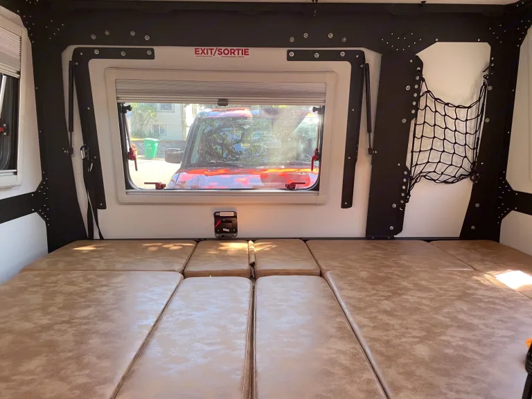 Secure, pop-up roof for optimized ventilation and head-bunk avoidance.