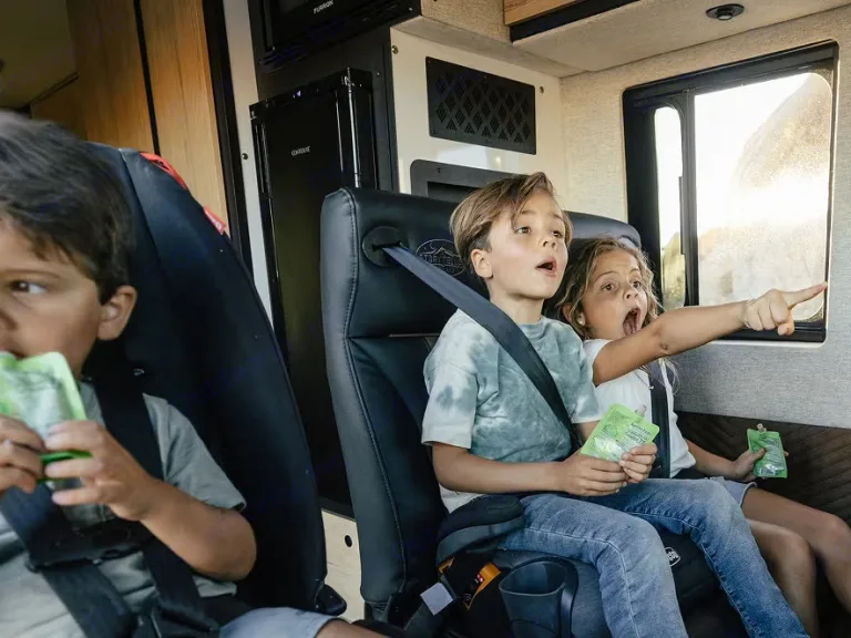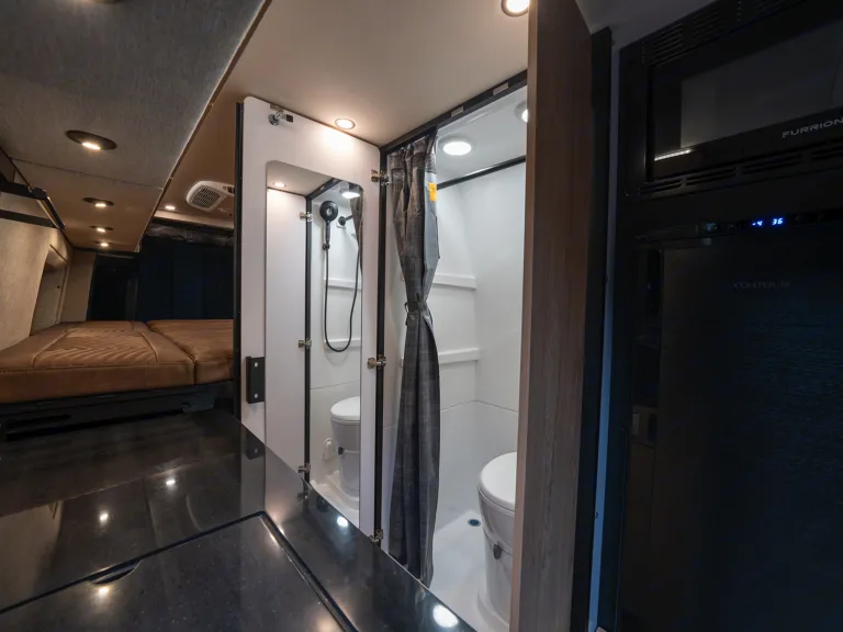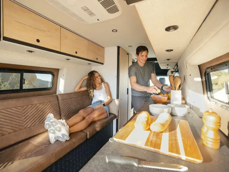 Adventure in luxury with our brand new Storyteller Overland Crew Mode XL van! Dog and kid-friendly. Can accommodate up to 3 car seats. It has everything - indoor bathroom and shower, 2 beds (sleeps up to 5), heating and A/C, fully off-grid capable - no hook-ups needed! What's included• Two Beds: One RV Queen size in TroupeLounge™, One RV Full size in LunarLoft
