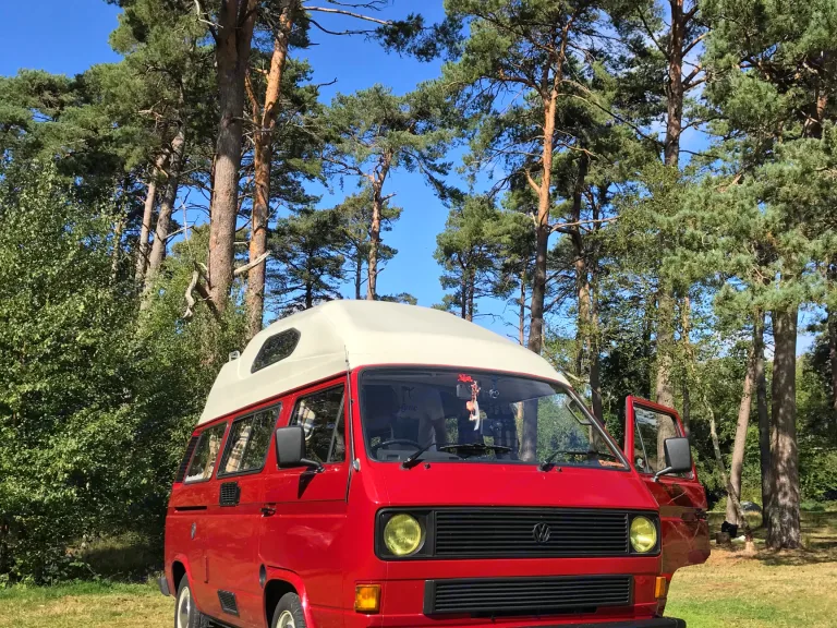 Pots and Pans. Leave your utensils at home, we have you covered with all the Pots, Pans, Cutlery and Dinnerware that you will need.To add value to your camping experience we are members of The Camping and Caravanning Club Privilege Scheme, which entitles you to up to 30% off Club Sites and 15% off Camping in The Forest Sites. Contact us for more details of how to book the campsites.Tiki Red is a classic vehicle so we limit the mileage to 150 miles per day unless otherwise discussed and top speed in these old beasts are 65 mph.All the necessary safety equipment is onboard including a Carbon Monoxide Detector and of course a Fire Extinguisher/Blanket & First-Aid Kit to offer added peace of mind on your trip.What's includedWe love making your holiday really special. When you are hiring a retro VW campervan from us, we make sure that you’ll be getting all the essential equipment you need. You’ll find listed below all the key items that we include when you hire one of our campervans.