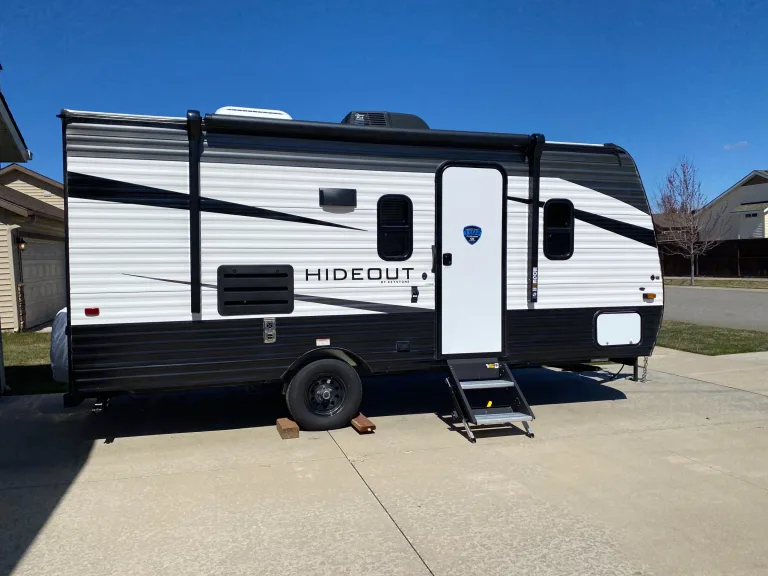 Home is where you park it! This small, but roomy travel trailer is a perfect family rental. The 2021 hideout has a modern feel with the hardwood look vinyl floors. Our trailer sleeps 5-6 comfortably with a queen bed in front and twin bunk beds in the back. You also have the option to turn the dinette area into a bed for 2 (mostly comfortable for children). The dining area slides out creating a roomy and spacious feel. We take pride in providing a clean and comfortable space for you to stay in. We look forward to sharing our little slice of heaven with you!