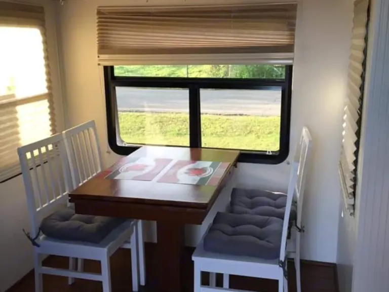 Renovated as a tiny home, our RV is remodeled with bamboo flooring, brand new carpet, new furniture, and new mattress in master bedroom! The layout is ideal, with an elevated living room that has it's own curtain to separate as a second bedroom if needed! Will deliver and setup in Prairie Creek Campground for free (must inquire at time of booking to confirm).Absolutely no smoking or pets (you will lose your deposit). RV needs to be returned in a reasonably clean condition and if it's not, cleaning fee starts at $150. Delivery/pick up have a minimum fee of $150Other things to noteDelivery/pick up starts at $150 for up to 20 miles and is charged per additional mile after. Please inquire for delivery fees before booking.You must have a full hook up site (water, 50amp electric, sewage). We do not allow boondocking of any kind. This will result in loss of your deposit.