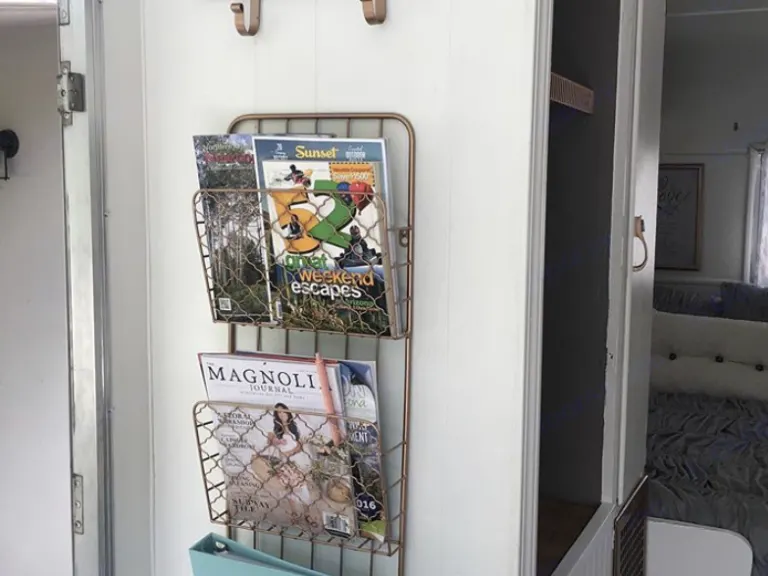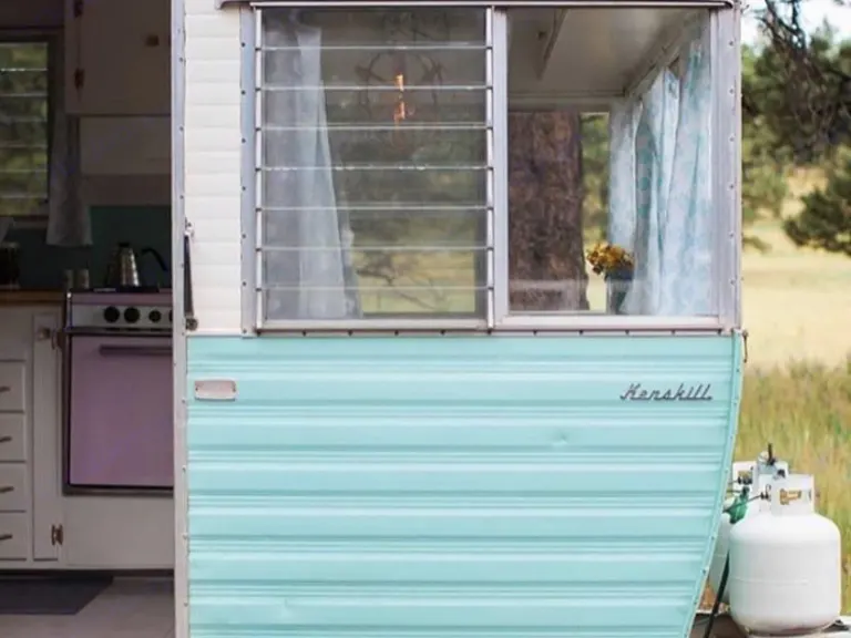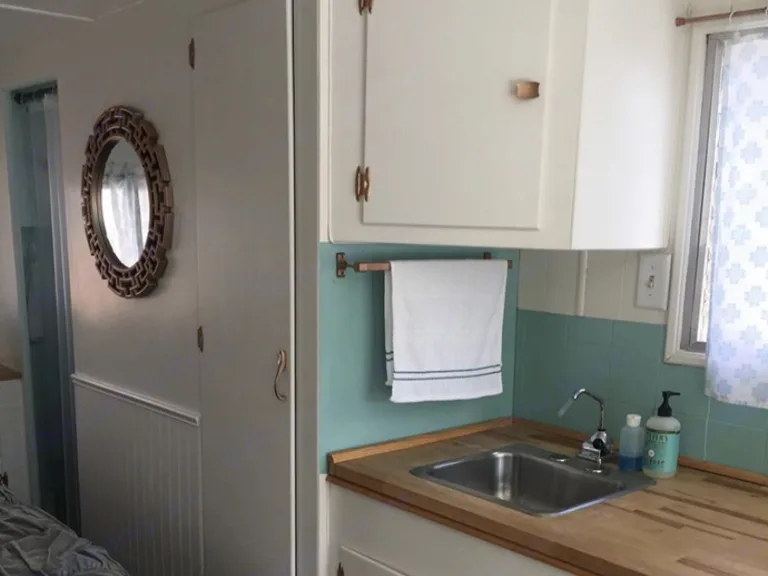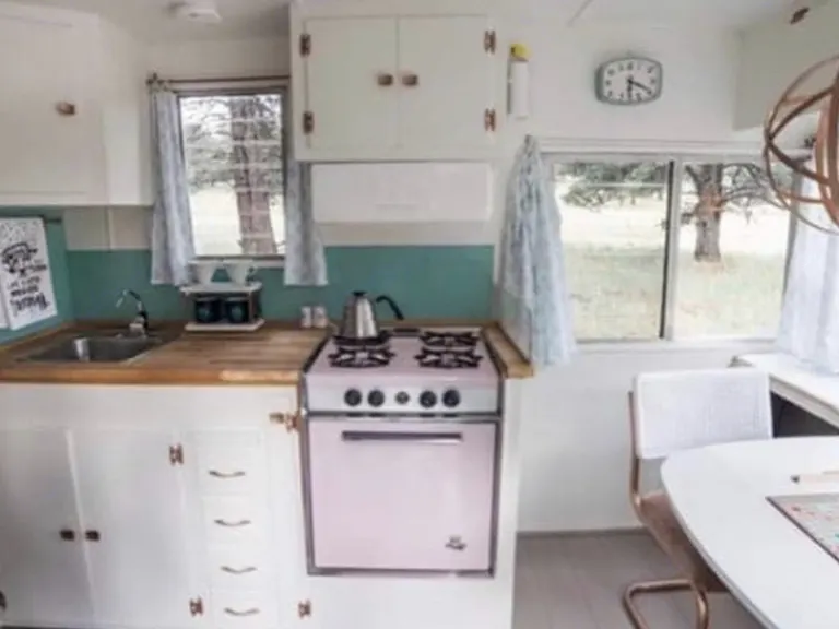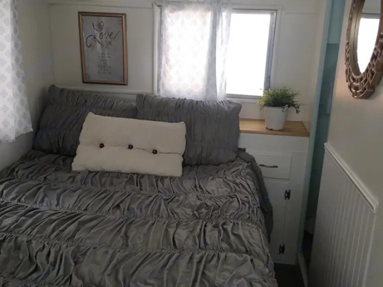 Absolutely adorable 1962 Kenskill travel trailer! This vintage camper takes you back in time but with some modern comforts. The shower unfortunately is not in working order and toilet is portable but convenient and easy to use. The adorable pink stove Is a great touch and original to the trailer. Inside you will find that the camper comes with all necessities to make you feel right at home such as games, magazines, books, towels, blankets, extra chairs and table for outside, as well as all kitchen utensils. The bed is so comfortable and keeps you nice and warm on a chilly night. There is a blow-up mattress as well that can be used if you want to add a 3rd person. A perfect camper for a special get away with the one(s) you love.