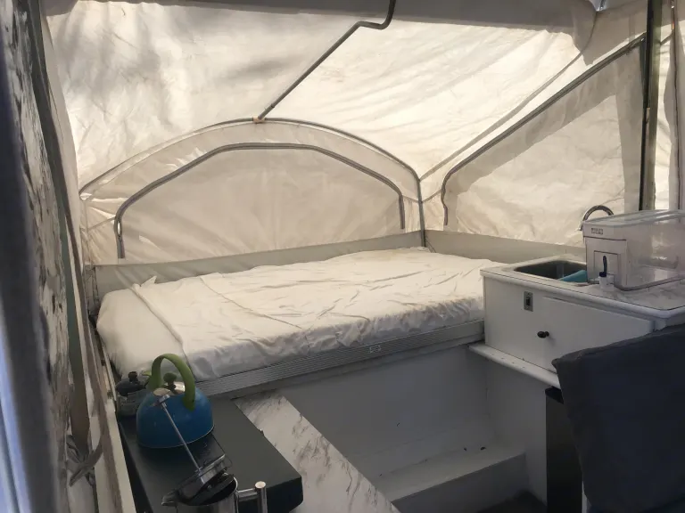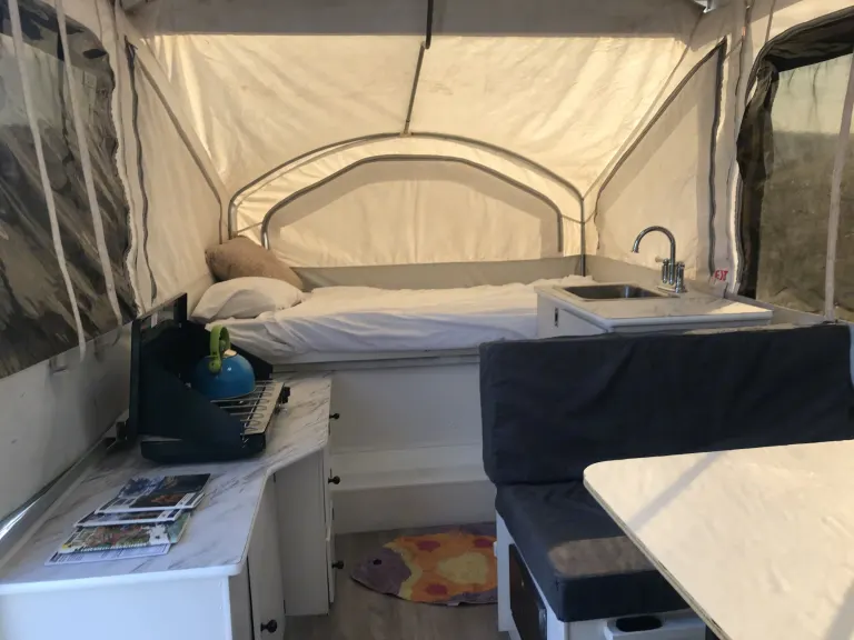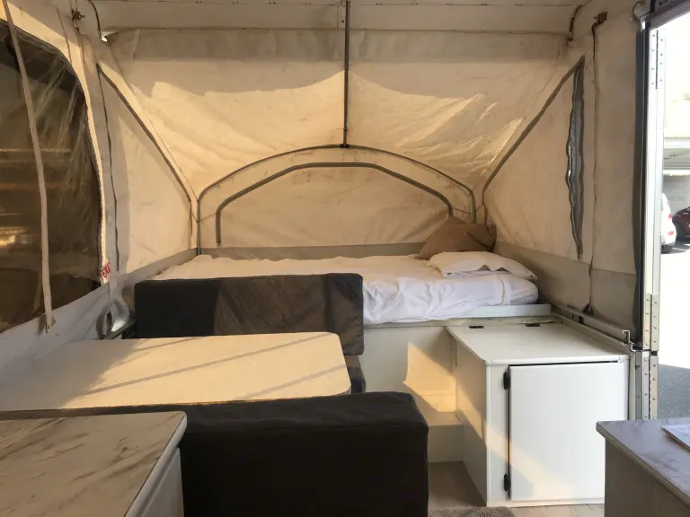 At this time Popup is NOT Available as it’s undergoing repairs, I cannot figure out how to deactivate my listing without deleting it, so I’m going to increase my price to an unrealistic figure to dissuade attention until it’s repaired, thanks for understanding!Remodeled and super clean. Extra thick mattresses for comfort. Two large beds plus the dining table folds down for a third bed. Easy to customize just let us know what you need. Toilet is an option. Can use on shore power and have fridge, outlets, lights and water. Or use with battery and have lights and water. Very inexpensive to have it delivered, set up and taken down ($25 minimum).What's includedFresh linens, propane stove, towels, blankets, pillows, cookware and utensils, French press for coffee, camping chairs. Just let us know what you need. Toilet optional.RecommendationsPlan to have it delivered and set up, it’s like arriving at a hotel room.Other things to notePets welcome! Request delivery and set up/take down for a nominal fee.