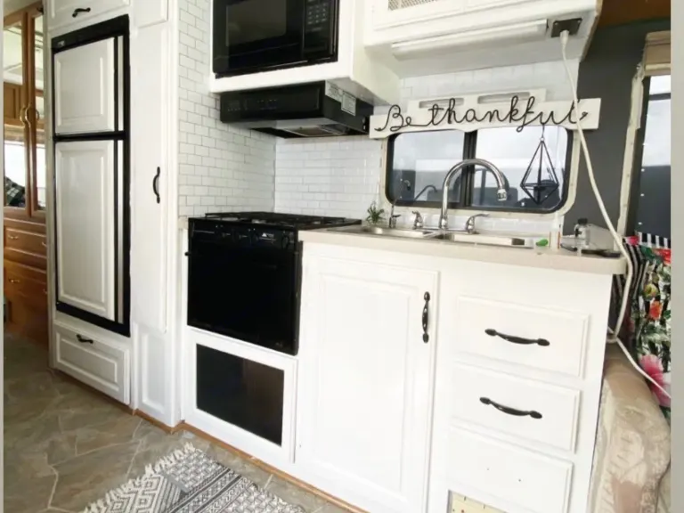 Aladdin is a '97 30-foot motorhome ready to show you the world. There's a lot of character in this vehicle, as we just bought it and are still updating to make the home-on-wheels more "instagrammable"or "pinterest-y". Aladdin has updated vinyl flooring in the bathroom, kitchen, and living room areas. Aladdin sleeps 4 people and has a brand new queen sized bed, as well as a couch that folds down for 2 others. There is bench seating in the dining area adjacent from the kitchen.This A-class motorhome is equipped with a 460 gasoline engine, these old engines are built reliably and with durability. So far the engine has 60,000 km's on it and can handle many more for your road trip adventures. What's includedBlow Up Boat with Paddle