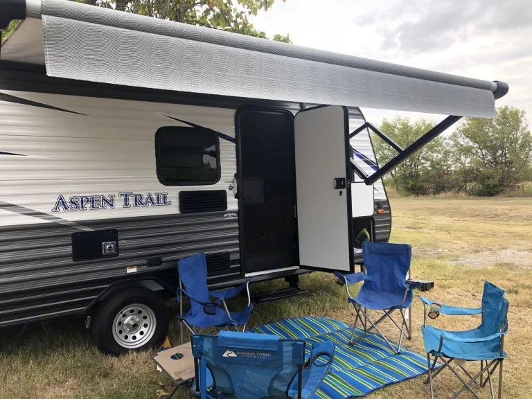 Ready for a hassle-free no-stress rental then look no further!I have tried to include everything you might need (cookware, dinnerware, toilet paper, towels, etc) so you just need to pack a bag and grab some groceries.If needed, rental includes a weight distribution hitch w/ anti-sway & Prodigy wireless brake controller (no wiring; plugs into your 12V outlet) to make your trip safe as possible. You will have to have a 7-pin plug on your vehicle; there are 4-pin to 7-pin conversions but you won't have things like trailer brakes. You will also need a 2" receiver; I will provide a 2 5/16" ball if needed.If you don't want to tow I can deliver to your reserved camp site, setup, and pickup. Cost would be $150 within 35 miles. Then rule of thumb is $3/mi beyond that (IE $1.50 each way). Just contact me for details and I'll get you a quote.The camper is a new and well appointed 2019 Aspen Trail LE 1700BH. At 17’ (21.5’ overall) it is spacious while being light enough (3,200lbs) to tow behind most small SUVs, small trucks, and vans. A ½ ton truck or large SUV (or larger) will have no trouble with this camper.Camper has electric a/c and propane heat. Propane included with rental. 3,500w quiet generator available as an add-on as well as free water fill-up if dry camping (camping without utility connections).Sleeping arrangements include a queen bed, 2 bunks (twin upper & full lower), and a dinette which converts to a full sized bed. This is perfect for a family of 5 (7 if kids double up on the dinette and lower bunk).Kitchen area has a sink with a small fridge/freezer, microwave, and 2 burner propane stove. I’ve also provided an outdoor camp kitchen with a Blackstone propane griddle and required cooking utensils.Indoor entertainment includes a TV w/ DVD player with Hdmi inputs along with a Bluetooth stereo. Stereo also has a 3.5mm AUX in. A portable Bluetooth speaker is included as well.Porch area features a power retractable awning and LED lighting.Several add-ons are available as well to meet the needs of your trip and for your convenience.Note: I'm in Dallas almost daily so if pick-up in my area doesn't work I will work with you to find a better pick-up and drop-off spot.Detailed stocking list (what's included):Kitchen