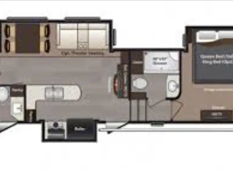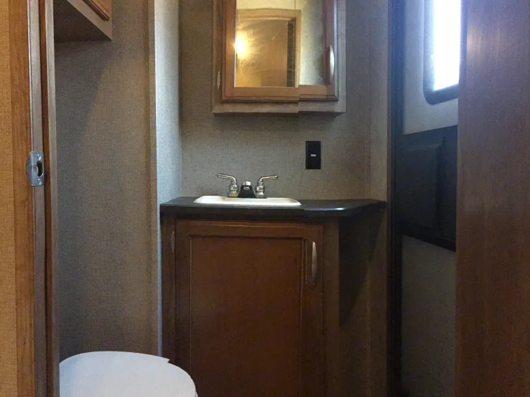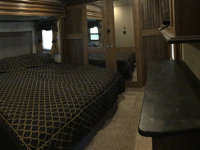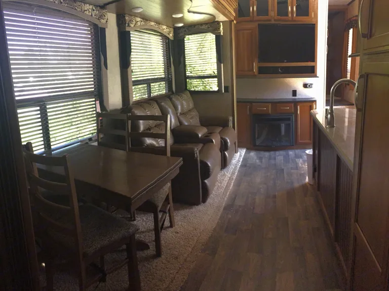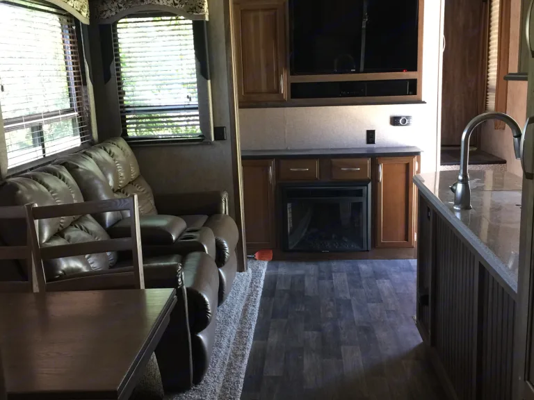From the roomy bunks, dinette, and king-sized comfy bed, you will be in Glam Camping heaven. Features include indoor/outdoor speakers, Flatscreen TV/DVD player, AC, microwave.