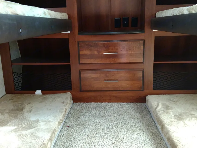 Jayco Eagle HT 29.5 fbhs. Rear Master bedroom. Front 4 bunks bedroom. Automatic leveling. Half ton towable 5tj wheel. Fridge, microwave, stove and oven. Shower, hot water heater, toilet