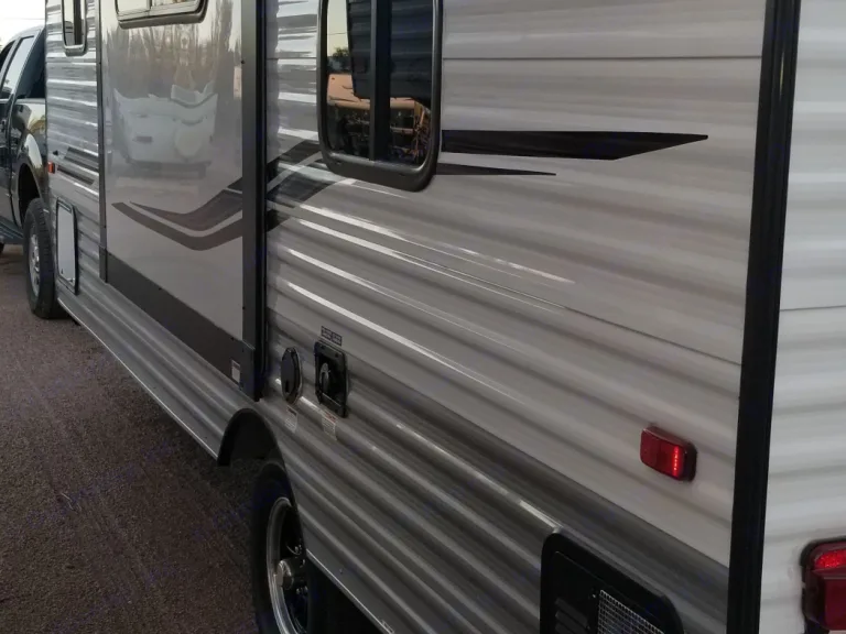 New model, hardwood floors, dining slideout surround sound, full bath, bunk and queen beds, full kitchen, large fridge, lots of storage.