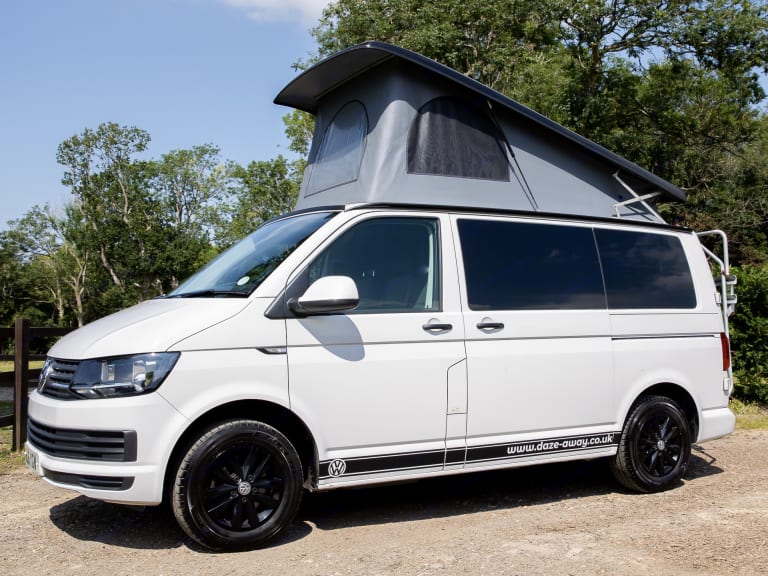 * 50 ltr Fridge with Freezer CompartmentAnnie is a beautifully and professionally converted Volgswagen T6 camper van.In the front are 3 seats including the drivers, with room for another 2 people in the back. A modern stereo unit features DAB Radio and bluetooth connectivity. As well as speakers in the front, there are also a pair above the rear bed for those that enjoy music and a lie in.The camper has a fully documented, high quality conversion. For safety, all gas and electrical appliances have been fitted by accredited installers and are tested annually. There is a carbon monoxide alarm for additional peace of mindShe will sleep 2 adults and 2 children with ease. The rear seat easily converts into a comfortable double bed and the roof elevates to sleep another 2 people. The base of the roof bed is amply padded for extra comfort and the vehicle has black out blinds fitted to all the rear windows.With the roof up, the living area is extremely spacious providing plenty of head room to move about in. On board there is a 2-burner gas hob, sink with running water from an onboard storage container and a 50 Litre fridge with a freezer compartment. A 240 volt 3 pin socket and USB charging plug can be used when connected to mains power - hook up cable provided. There are ample storage compartments.Annie benefits from an insulated roof and a night heater that will keep you warm and snug if the temperature drops.