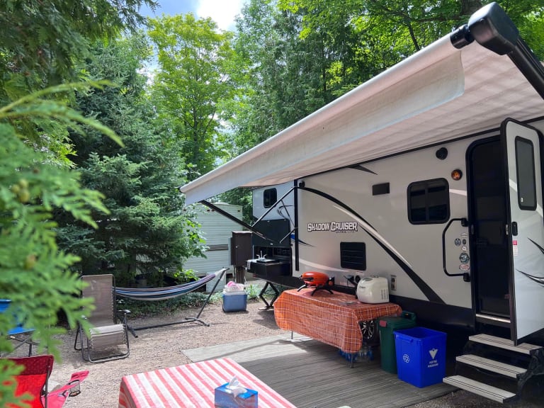 Glamping at its best!. This trailer sleeps up to 9 people (7 comfortably).The Shadow Cruiser is equipped with everything you should require for an unforgettable family camping experience.Top 3 features?1) Separated bedroom/bunkhouse for the kids with table, tv and door! (mic drop)