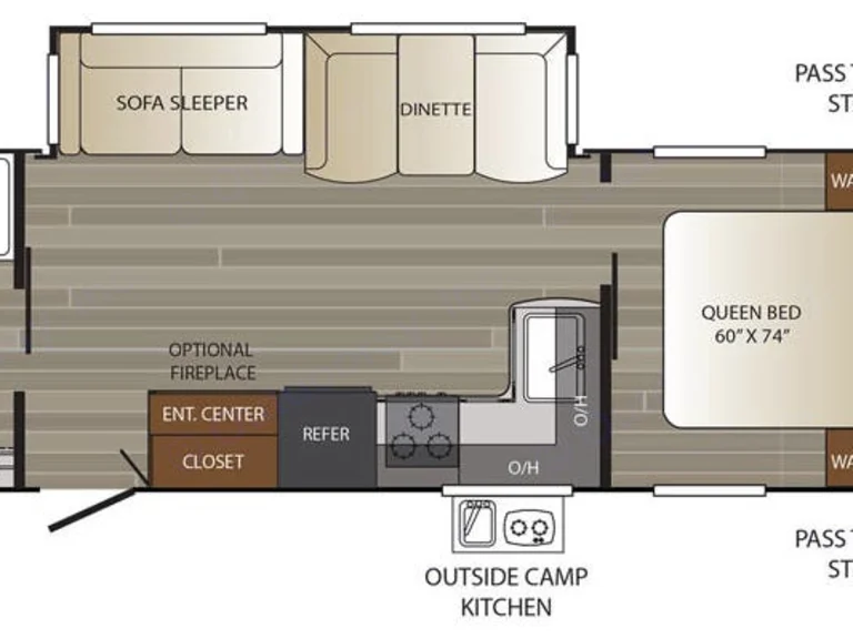 If you need extra sleeping room, the couch simply rolls out into a full size bed, and the dinette converts to a bed as well.