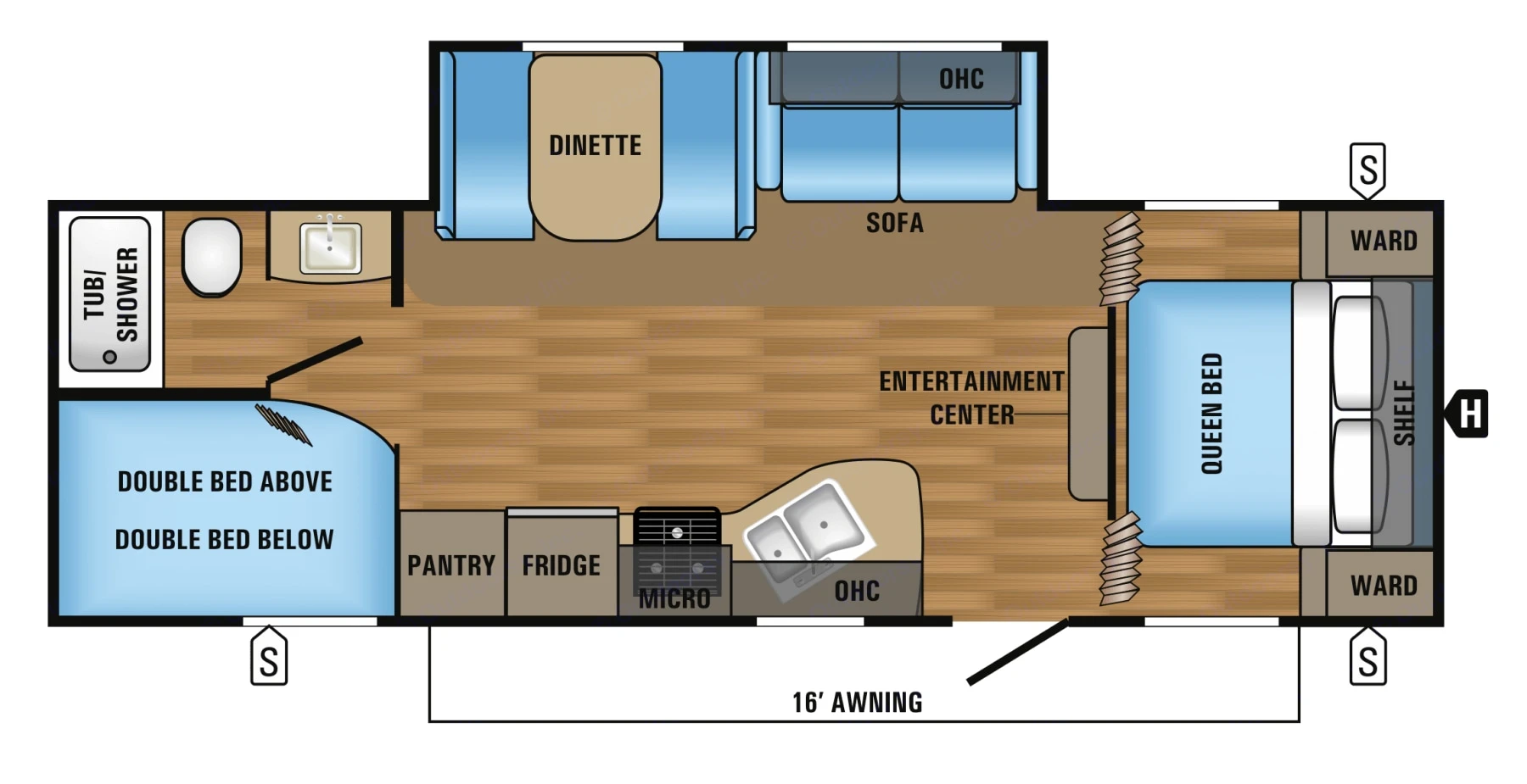 3. Arrive to Quadra and relax. Enjoy having your travel trailer delivered and set up. Don't worry about towing or ferry costs. We will set up before you arrive and tow away when you are finished.This 30' trailer is ideal for couples and families. There is a north-south oriented queen bed in the front, with plenty of storage and privacy. There is a bunk bed with two double beds, ideal for kids. The sofa folds down to a double bed, making a comfy spot for rainy movie days. The dinette folds down for a small double, perfect for a small child or pack and play. Though our camper sleeps up to 10, it is ideal for a group of 4. Most campsites have a 6 person maximum.The kitchen is well equipped with all your cooking and dining needs. A large spacious pantry is available for your groceries, in addition to a large fridge/freeze combo. There is a propane cook-top and oven, as well as a small microwave. A large double sink makes clean up easy.It is easy to stay comfortable with A/C and propane heat.The entertainment centre includes a radio, a 32" TV, with plenty of DVDs, books, toys, and games to enjoy.Outside you can stay dry or shady under a spacious 16' awning. Other comfort items include an outdoor carpet and camping chairs.Come enjoy the beauty and tranquility of Quadra Island, without the hassle and expense of bringing your own RV.Please ask us about extras to make your stay even more enjoyable: BBQ, Stand up Paddle Boards (SUPs), e-bikes, and more (availability may vary). Other things to noteNo Smoking