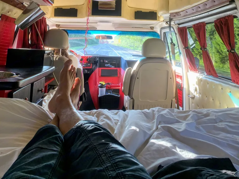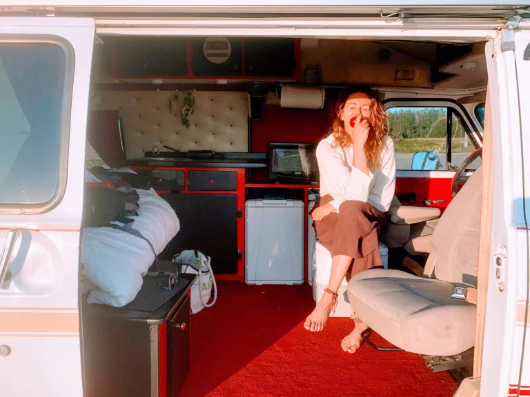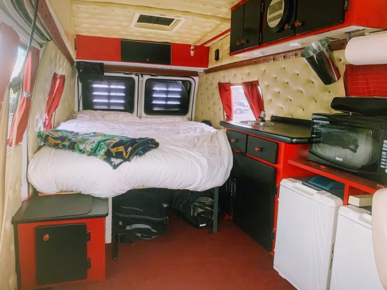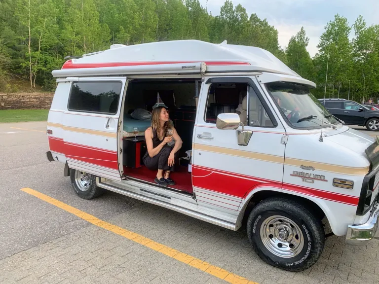 Back to the future, Tonton Marty s’anime pour vous faire vivre de folles aventures! Succombez à l’appel de la nature, mais confortablement! Nomade et un brin sauvage!Parfaitement aménagé pour deux personnes, Tonton a plein de commodités; Les rideaux faits sur mesure et les vitres teintées offrent une belle intimité, tout en gardant une bonne luminosité! Le toit surélevé vous évitera de marcher sur les genoux! Le lit double est positionné de façon à ne pas avoir la tête et les pieds coincés de bord en bord du van! Le confort du lit est impeccable! Beaucoup de rangement disponible, autant sous le lit que dans les multiples armoires. Il y a un robinet avec un réservoir de 20L d’eau potable, faciIe à remplir ainsi qu’une toilette portative extrêmement pratique! Alimentation 12v (lorsque le van est en marche) et 110v, extension fournie pour branchement 110v. Bref, il ne vous reste qu’à apporter vos serviettes de douches et vos lunettes rétro !Ce van inclus une ambiance 70 - 80’s et un tapis flamboyant pour vos dance moves à la Michael Jackson (d’ailleurs, la hitlist de 1983 est incroyable!!!)