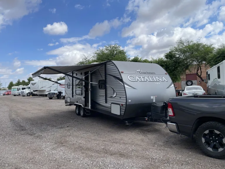 Half ton towable. Gvwr about 4800lbs. Sleeps 7 adults comfortably but can fit up to 11 if doubled up on bunks and king bed. Rental includes use of generators. Brand new TVs. A/C, heat, black grey and fresh water tanks. Pots, pans, PUR filtered water, coffee maker and toaster. Each bunk has outlets and LED lights. King mattress in the master with a door to close off (not just a curtain). Sway bars and weight distribution hitch for easy towing. Pet friendly. What's includedClean sheets, pillows, blankets. Outdoor kitchen setup. Basic kitchen utensils and cleaning supplies.RecommendationsSouth rim. Grand Canyon. Country thunder.