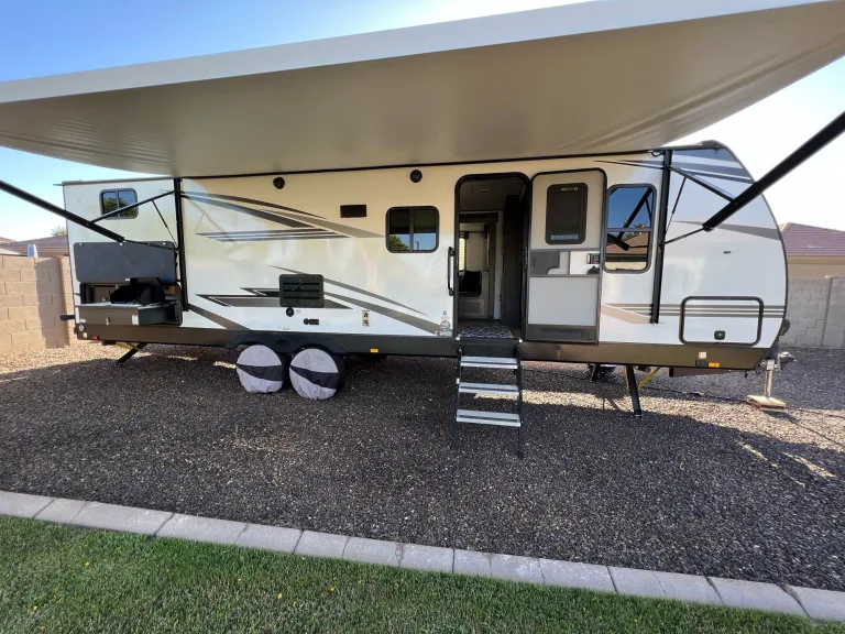 2021 MPG 2750BH - Super Clean - comes with full kitchen amenities, dishes, cups, spices, coffee maker, utensils, and cleaning supplies. 42” Flatscreen TV, Nintendo, DVD player, Bluetooth stereo w/indoor & outdoor speakers. Outdoor kitchen and fridge. Easy pickup location and drop off in Northeast Queen Creek. We want to make your experience a great one! Full trailer walkthrough with every rental.We love this trailer, and keep it clean and in great shape. Only 6,300lbs dry weight.Weight distribution hitch & proper setup included in the price.What's includedKING SIZE BED in Bedroom. (Both Bunks & King Bed have memory foam tops)-42” Flatscreen TV w/ DVD player, Nintendo & Amazon Firestick.—Dinette and Couch (both can be beds)-Bluetooth Stereo, outdoor & indoor speakers (outdoor speakers are LED lit, USB charging ports throughout)-Awning has LED light strip. LED Blue undercarriage lights.-Fireplace with color changing backgrounds. Can be used without heat as well for visual effect.-Boardgames, card games-Outdoor Fridge, Sink, & Stove.-Comes with full kitchen. Dishes, cups, silverware, coffee maker, paper towels, cleaning supplies, pots, pans, cooking utensils & spices.-All you need are linens and towels-Artificial grass for entry rug-Weight-distribution hitch with proper setup included.-Includes Surge Protector if your going to an RV park/campground.-Trailer only weighs 6300 lbs dry. Can be towed with well equipped 1/2 Tons.RecommendationsFlagstaff, Sedona, Mogollon Rim, Payson, Showlow, Sandiego. Get out and enjoy the outdoors!Other things to noteTrailer cannot leave the USA. No smoking.