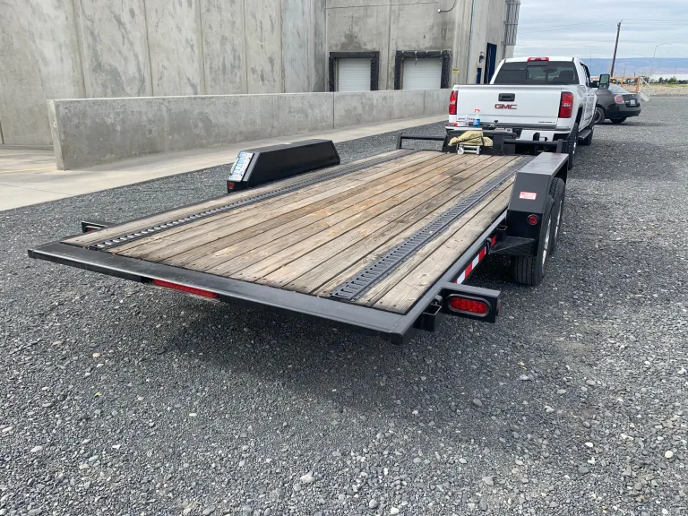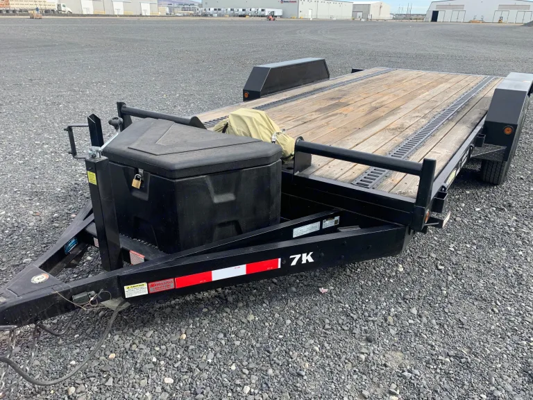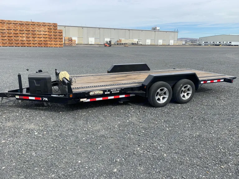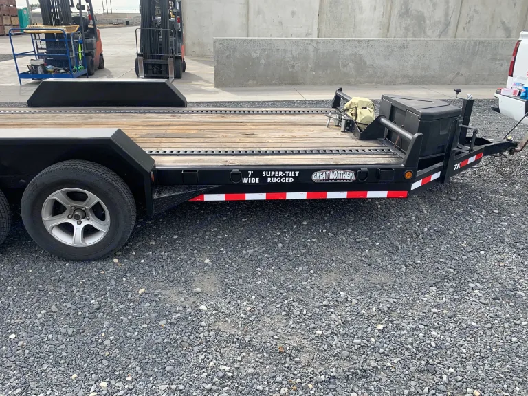This is a 7x18 tilt flatbed trailer with a winch to haul vehicles or machinery or any equipment.