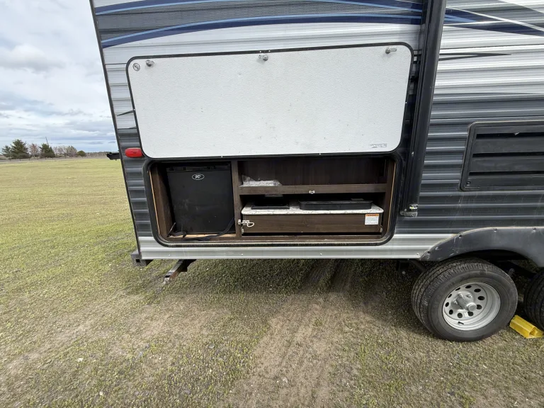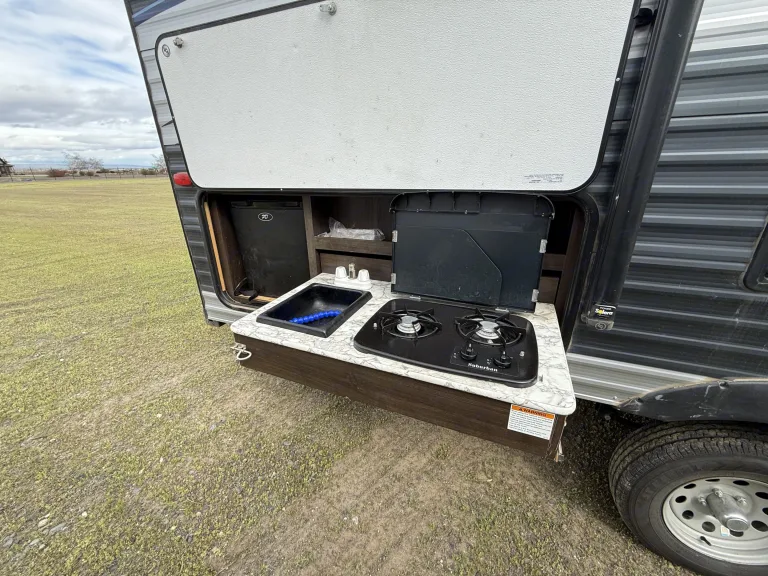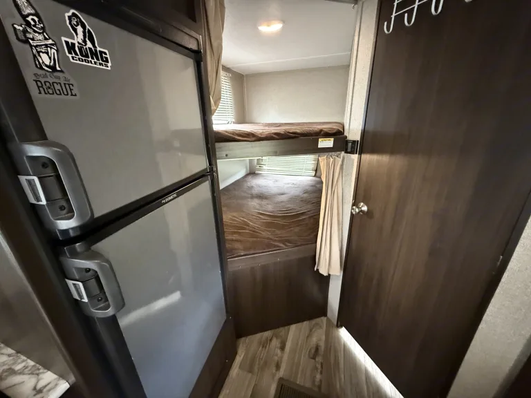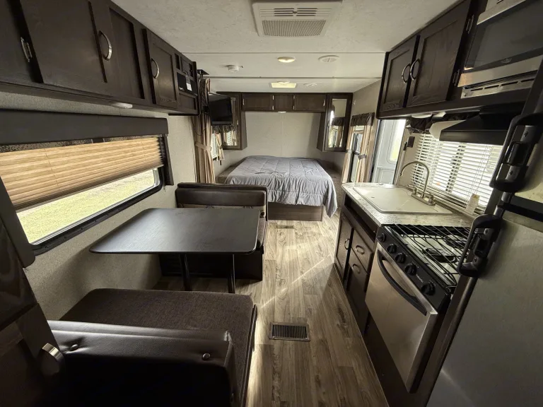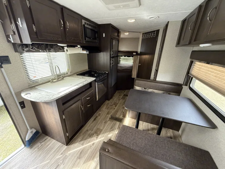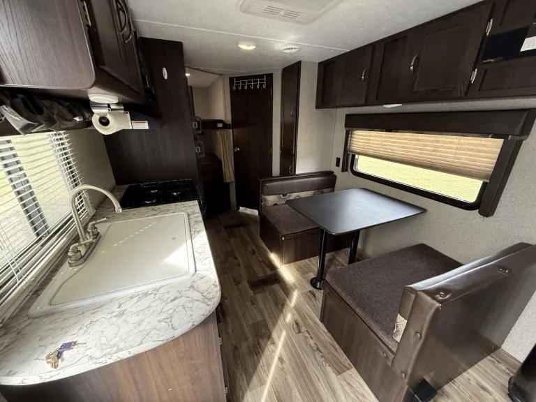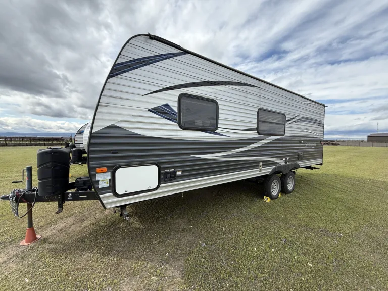 The 2018 Keystone Springdale West 220Bhwe is a well-designed travel trailer that offers a perfect blend of comfort and functionality for families and outdoor enthusiasts. Lightweight and easy to tow, this model features a spacious interior capable of accommodating up to seven people.The floorplan includes a cozy queen-sized bed in the front for parents, while the rear boasts double bunk beds perfect for kids or additional guests. The central living area features a dinette that easily converts into a sleeping space, ensuring plenty of room for everyone.The kitchen is equipped with modern amenities, including a refrigerator, microwave, and a three-burner stove, providing all the necessities for meal preparation during your travels. The stylish living space is designed for relaxation, with ample seating and storage options for all your camping gear.Exterior highlights of the Springdale West 220Bhwe include a power awning that provides shade and comfort, outdoor speakers for entertainment, and a durable construction that makes it ideal for various camping adventures. This travel trailer offers the perfect balance of style, comfort, and practicality, ensuring an enjoyable camping experience for all.
