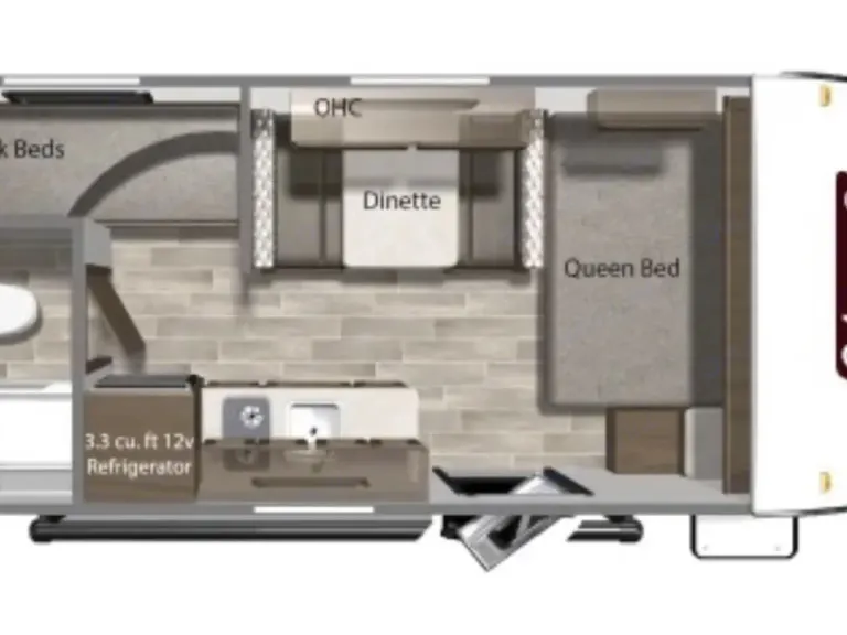 Ready for the campground life is the easiest bunkhouse travel trailer currently available, the lightweight single axle Coleman Lantern LT 17B. With a camper queen bed, a pair of twin bunks, and a convertible dinette, you’ll have room to sleep five.As an added bonus, the 17B comes with a nifty electric fireplace.Perfect for families Other things to noteNo smoking , no pets , no festivals
