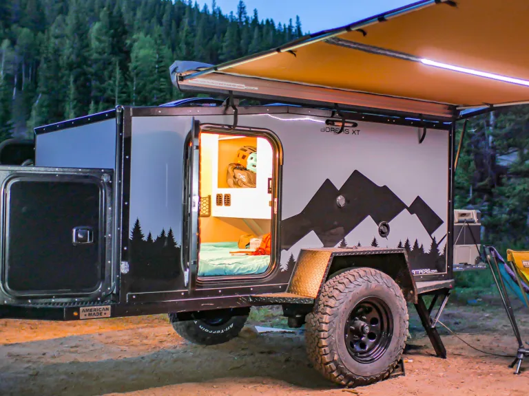 Boreas Series Trailers – Designed and built by Boreas Campers, Colorado’s top camper trailer manufacturer, are true off-road and off-grid campers. Built to last a lifetime, each Into The Wild Overland off-road camper is a custom-build and hand-crafted to supply you with everything you might need to make the best of your next camping trip. The off-grid capabilities and mechanics of the camper make any backcountry easily accessible and ready for new adventures all year round. We design overland campers capable of taking on a huge range of driving conditions: muddy, icy, rocky, or sandy terrains.The Boreas XT is a completely turnkey backcountry basecamp featuring an all composite and aluminum cabin (NO Wood!). With Timbren's independent suspension, oversized tires, and up to 20 inches of ground clearance the only limit to this trailer is the vehicle towing it. 20 gallons of on-board water, 100 watts of solar power, and sleeping for two makes this camper ready for any adventures. The camper also comes with the ARB 4-wall room enclosure that attaches to the ARB awning to allow more sleeping options/sheltered space.The galley kitchen comes fully equipped with a sink, and two burner stove and a Dometic 12v fridge/freezer. The solar kit will keep your deep cycle AGM battery topped off during extended off grid adventures. Bring all your gear and accessories with ample storage in the cabin and kitchen cabinets. With a dry weight of 1950 pounds and electric brakes it is easily towed by most vehicles. Venture out into the wild in a high-end way!We will provide bedding and linen, cooking utensils and cutlery, basic cleaning supplies, full propane tank, full water tank and a 30-min walkthrough at the time of pick-up. What's includedThe rental Boreas XT will come with bedding (sheets, blankets, pillows), cooking utensils, pot and pans, crockery, dishwashing and cleaning supplies, ground sheets, 4-wall awning room enclosure, a pop-up shower tent and an operating manual.The batteries of the Boreas will be fully charged when you come pick it up and the propane and water tank filled up. The trailer is equipped with an air conditioner; however to use it, you will need to connect to shore power or a 2000w generator. We have a generator that you can use should you need it.The shore power cable will be provided for you to charge your trailer as well, which will come in handy if you're parking in a RV park, or a camping spot with electricity. A garden hose will also be provided for you to fill up water during your trip if needed.The hitch for towing will be provided and installed on your vehicle. All you need is a blank receiver, a 7 pin trailer connection and a brake controller. If you have a ball hitch, you can leave it at home.Other things to noteThe water system is not useable in freezing temps. If you’re taking the camper out in the winter with overnight freezing temps, we will provide you with gallon jugs for dishes.