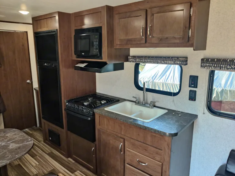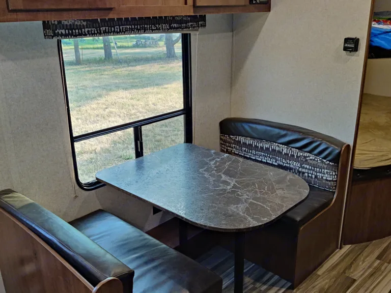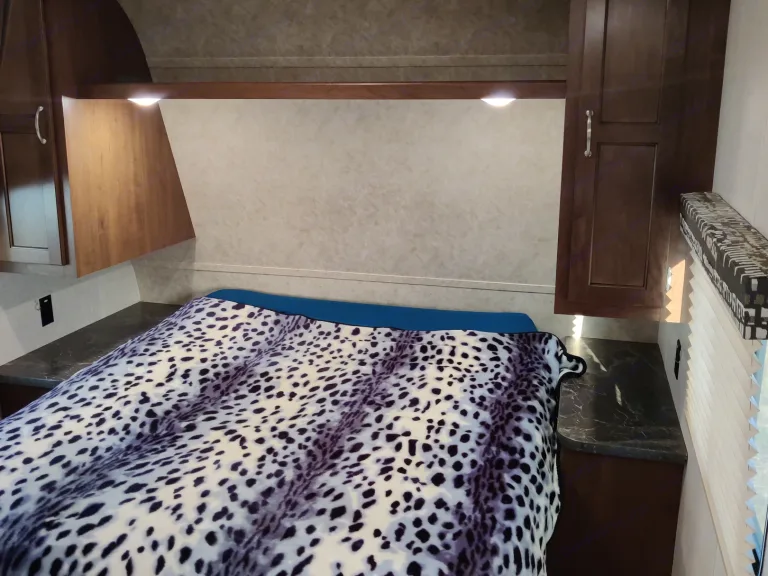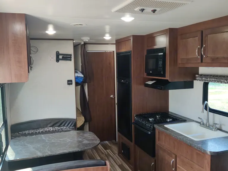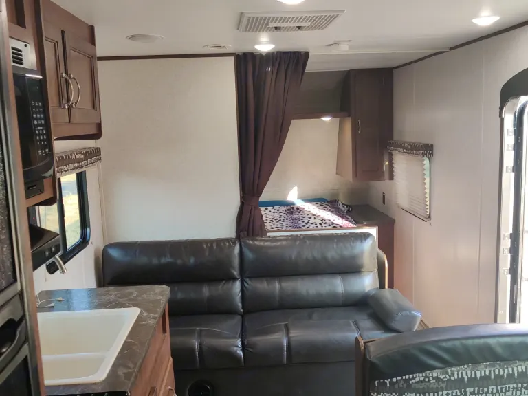 Here is our beautiful home on wheels ready to tour to your favorite vacation spot. This is a very comfortable rig that has everything that you need, and nothing that you don't. Indoor and outdoor shower, indoor and outdoor cooking, microwave, fridge and freezer, comfortable couch, and lovely dinette. AC and heating to keep you comfortable. If you're worried about towing or don't have a half ton pickup, fear not. We will deliver and pick up for a negotiable fee. Tell us about your trip and we can outfit you to fit your need.What's includedFresh linen and blankets are provided. Bring your own pillows Silverware, pots and pans