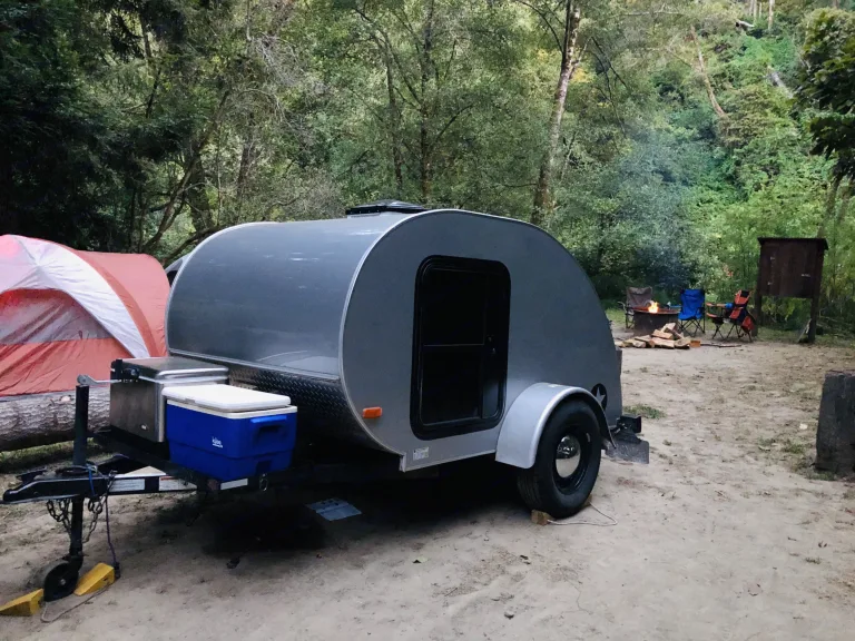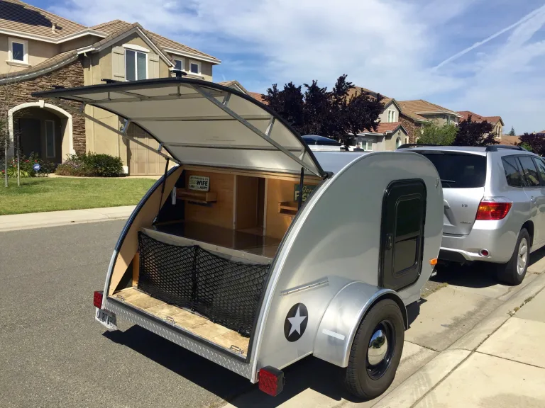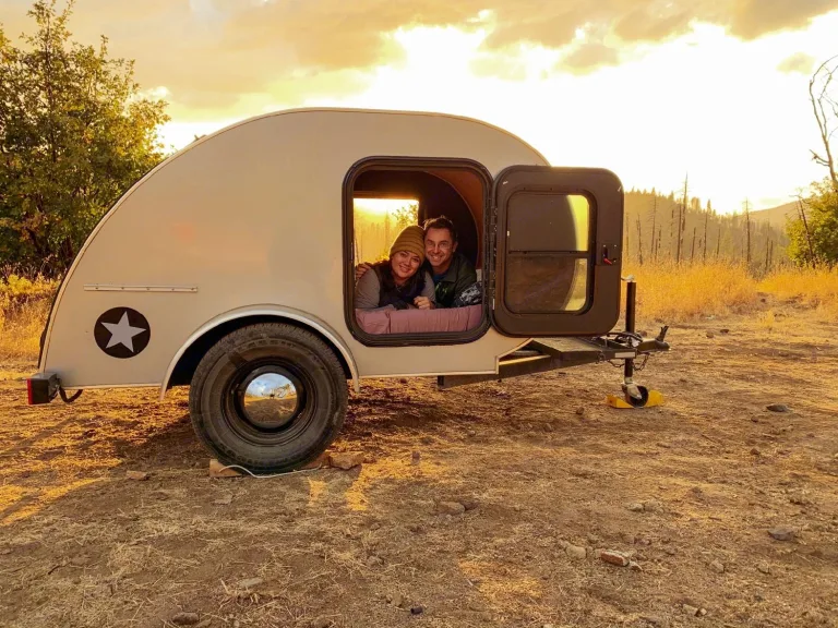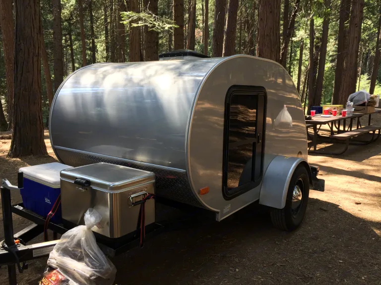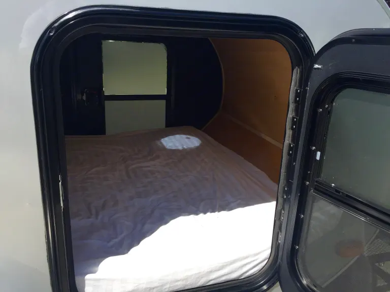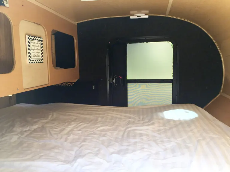 Description: For a quick get-away trip for the weekend, this trailer is a perfect fit. Easy to set up and can be towed by most cars or small SUVs. The trailer has a queen size mattress, a roof vent, two doors with windows and screens, and plenty of storage space. Comfortably fit two adults or 3 young children. It requires a 2" ball and a 4-pin electrical connector. Included accessories include a removable side table, a portable stove, storage bins, ice chest, pots, power pack, and pans.Due to Covid 19, the trailer availability is limited and extra days are blocked in-between booking for cleaning and sanitization. The complete interior and exterior are sanitized after the trailer is returned. All beddings are removed and washed and all equipment is wiped down with sanitizing wipes.What's includedPowerpack (for jumpstarting vehicles or charge cell phones), battery-operated lanterns and fan, cookware, portable stove, coolers, 5-gallon water jug, removable side table, and clean sheets.RecommendationsThis teardrop trailer is great for a hassle-free trip to the woods for camping, hiking, or outdoor adventure. The cabin has a queen size mattress and sleeps two adults comfortably. Other things to noteRequires 3-night minimal rental.Outdoorsy Customer Service: 877-723-7232